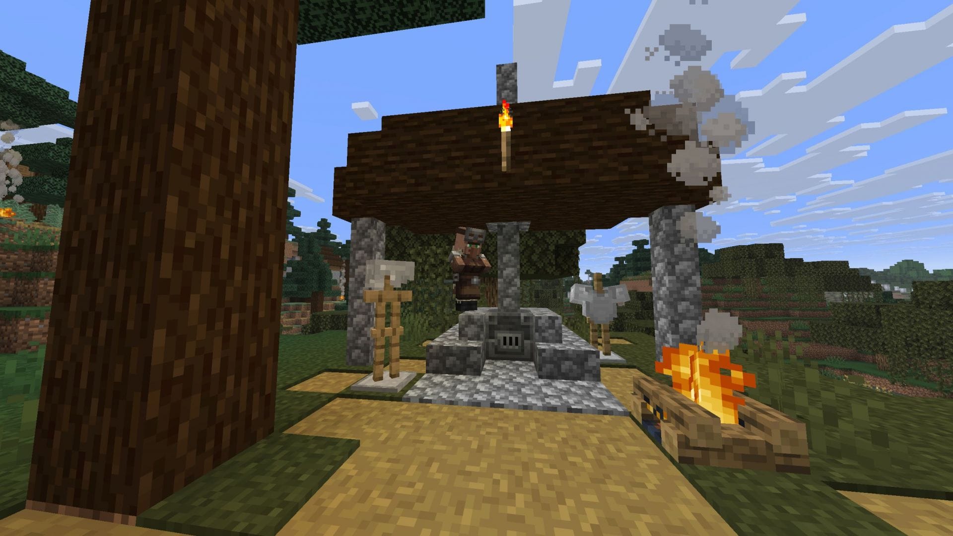 В магазинах кузнеца будут находиться части железной брони на подставках, но лавки оружейника еловой деревни не содержат ничего, в отличие от магазинов в других типах деревень.