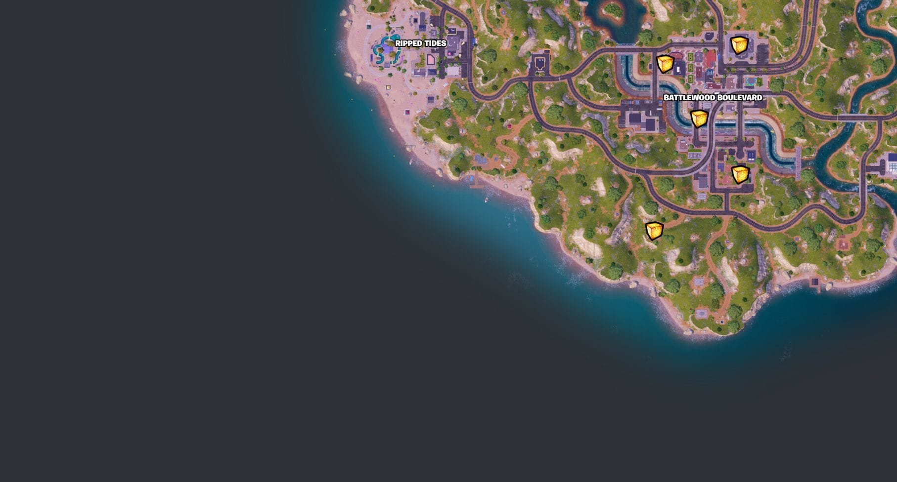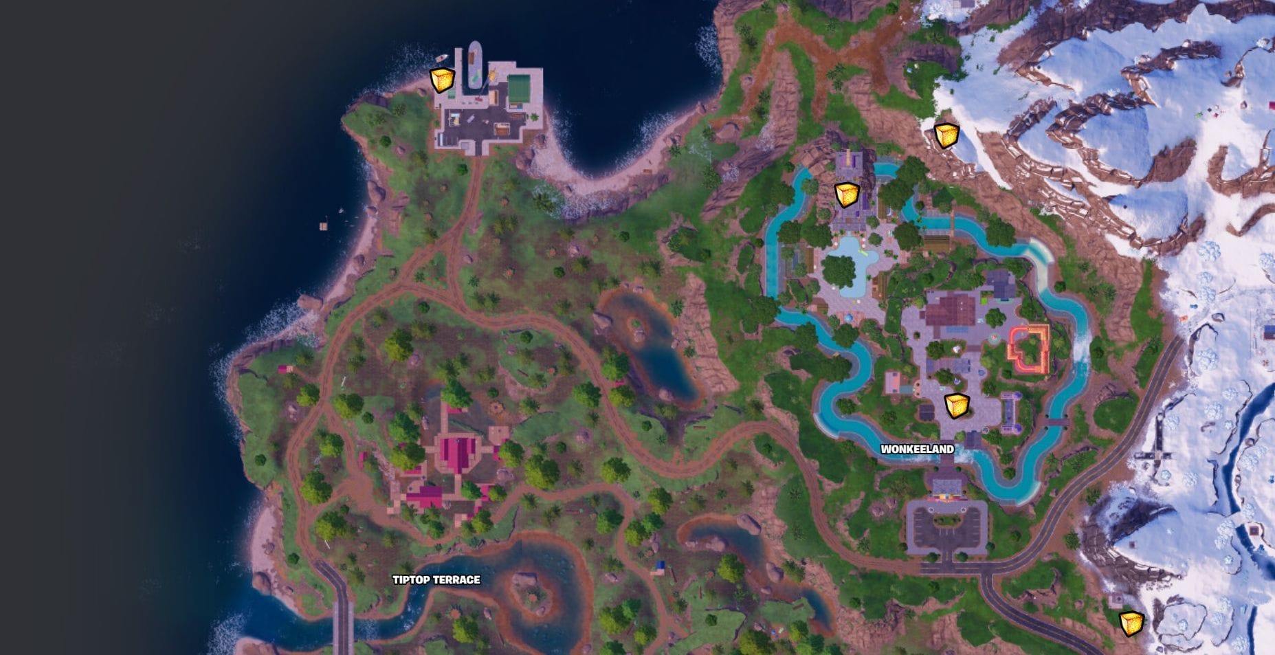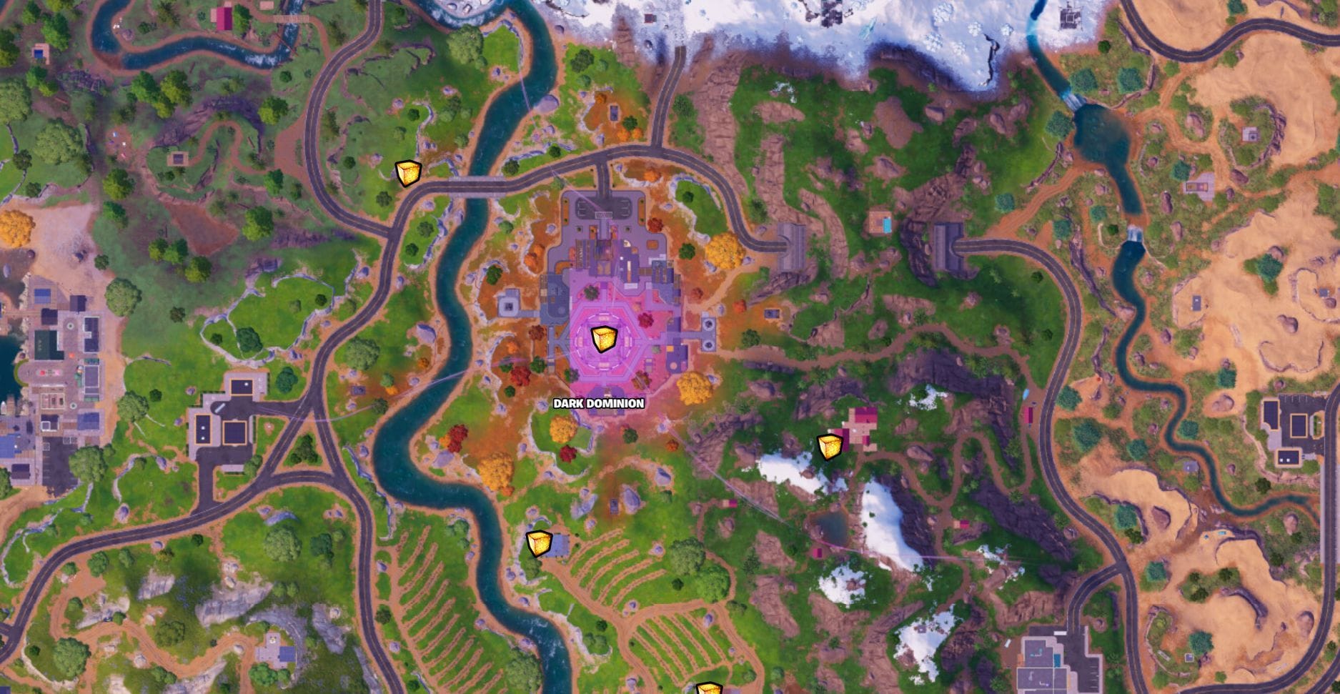 - Четыре из пяти местоположений Хаос Кубов в Fortnite Глава 7 Сезон 2 для этой POI находятся в пределах именованных локаций.
