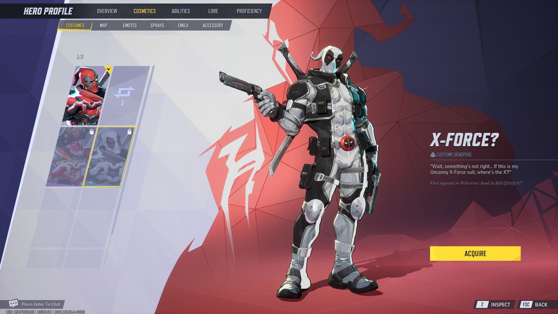 Костюм Deadpool в комиксах имел пряжку ремня с вставленным в неё X логотипом. Однако версия, представленная в Marvel Rivals, оснащена пряжкой с логотипом Deadpool. Именно поэтому у него возникают вопросы о недостающем X в описании костюма.