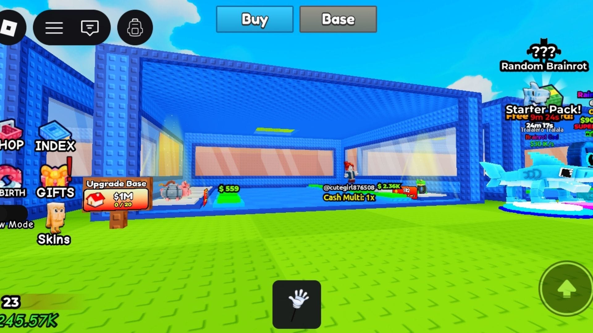 - Будучи новичком, вам следует сосредоточиться на размещении как можно большего количества Brainrots на своей базе. Это увеличит ваш доход и поможет быстрее повысить скорость.