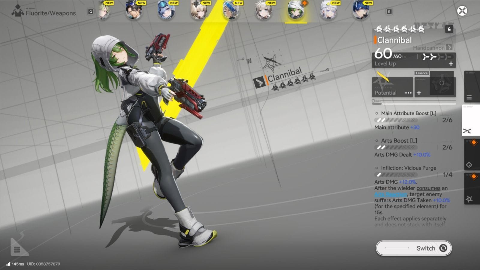 Clannibal в Arknights: Endfield является отличным выбором для Fluorite, так как идеально соответствует её стилю боя. Fluorite специализируется на активации реакций элементов, основанных на Arts, и это оружие вознаграждает точный подход. Базовые характеристики обеспечивают высокий уровень атаки и силы. Специфическая особенность этого оружия, Infliction: Vicious Purge, увеличивает основной урон Fluorite на 10%.