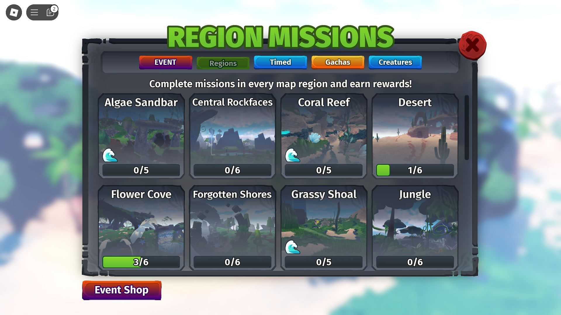 На сколько регионов распространяются Региональные миссии в Creatures of Sonaria?