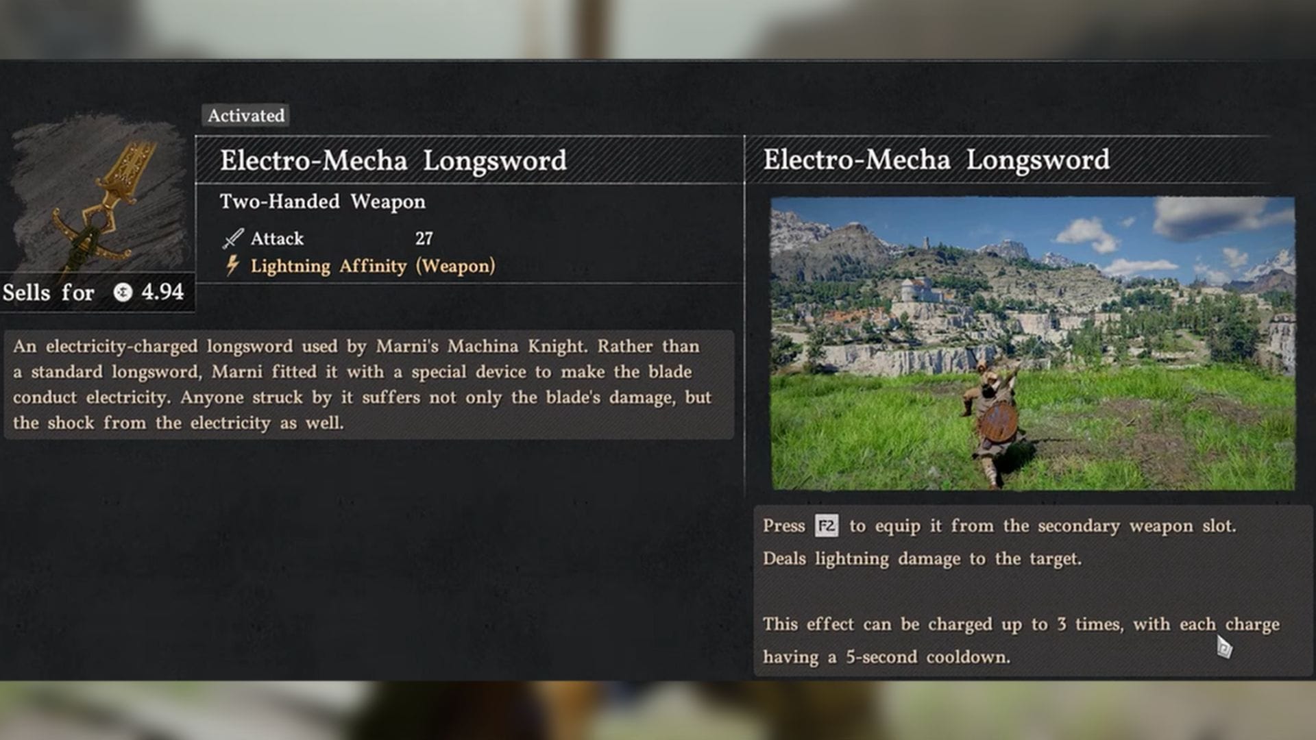 После победы над Махина Рыцарем вы получите Электро-Меха Длинный Меч в качестве вознаграждения.