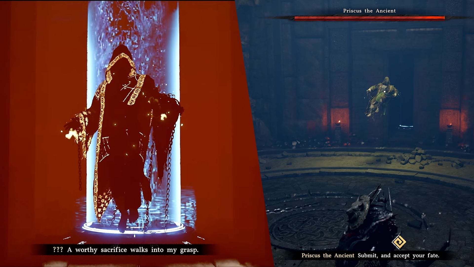 Во время боя с Priscus the Ancient оставайтесь в центре арены и отслеживайте его атакующие схемы. Вот что нужно делать: