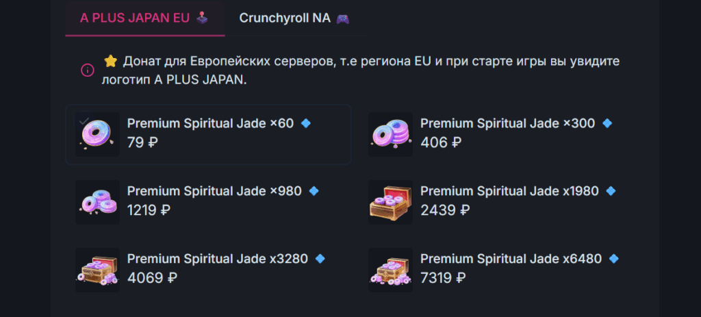 - используйте вариации: нефрит, премиальная валюта, Jade, пополнение, донат;