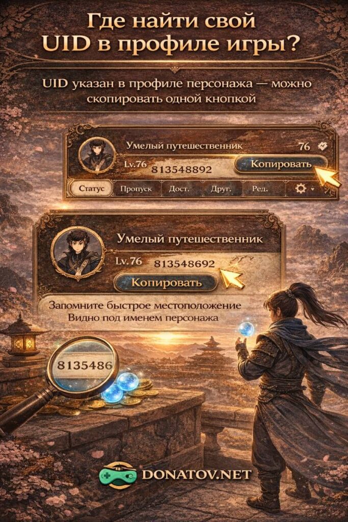 UID — это идентификатор аккаунта/профиля. Обычно он виден в профиле, часто его можно скопировать одной кнопкой.