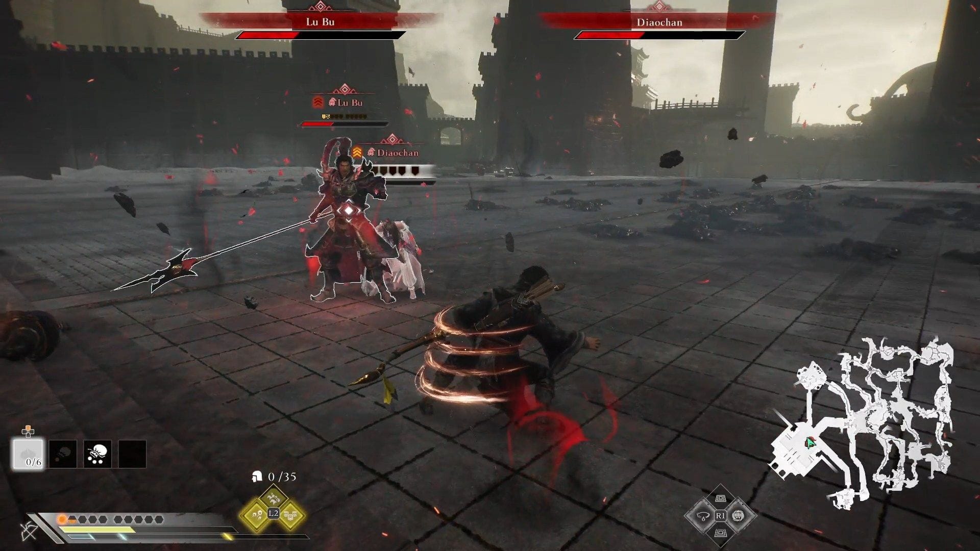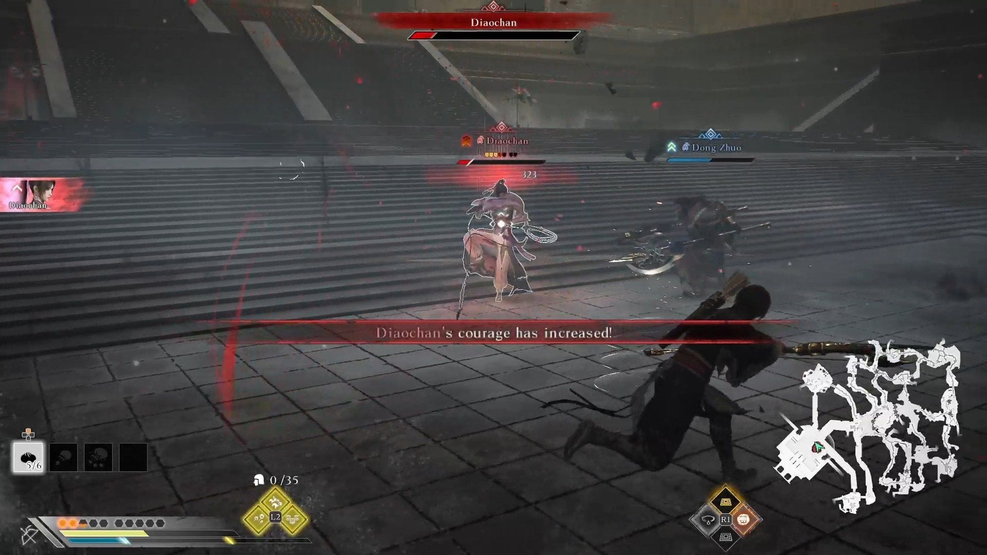 Если вам удастся устранить одного из противников, ваши предметы для исцеления будут сброшены. В этом районе также есть несколько кувшинов, которые вы можете сломать для исцеления. Примечательно, что когда один из Лу Бу или Дяочан будет побеждён, Дун Чжоу снова присоединится, чтобы помочь. Тем не менее, продолжайте терпеливо уклоняться от атак и атаковать в подходящие моменты, чтобы одержать победу.
