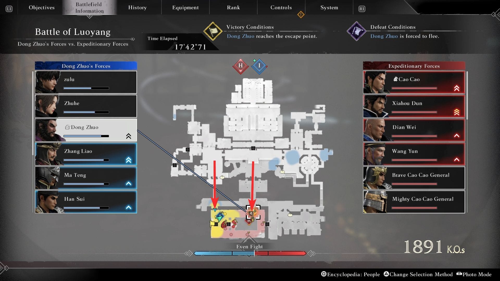 Если Ся Хоудун бросит вам вызов на поединок, победите его, чтобы облегчить процесс побега. Наконец, сократите здоровье Цао Цао (при необходимости переключившись на другого персонажа), чтобы продвигаться вместе с Дун Чжо.