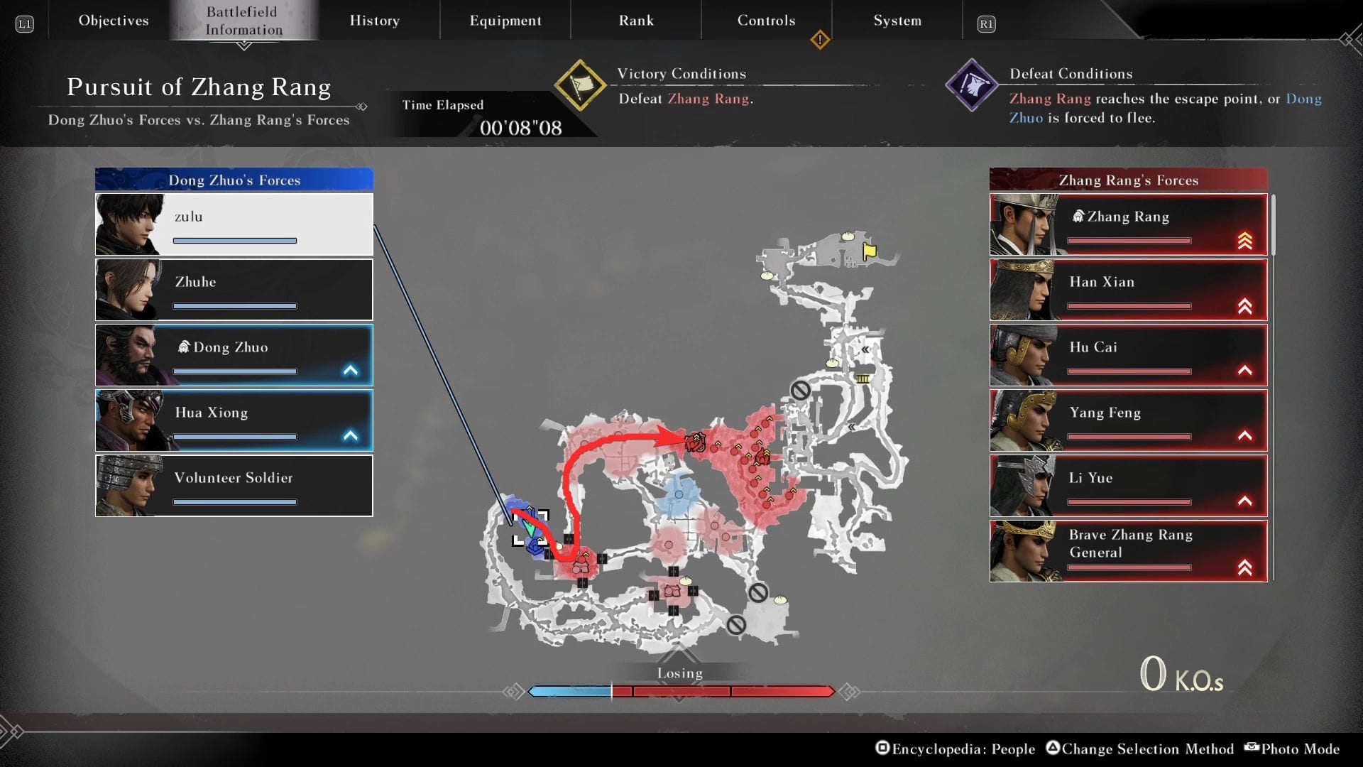 - Условие поражения: Чжан Жан достигнет точки побега, или Дун Чжуа будет вынужден убежать.