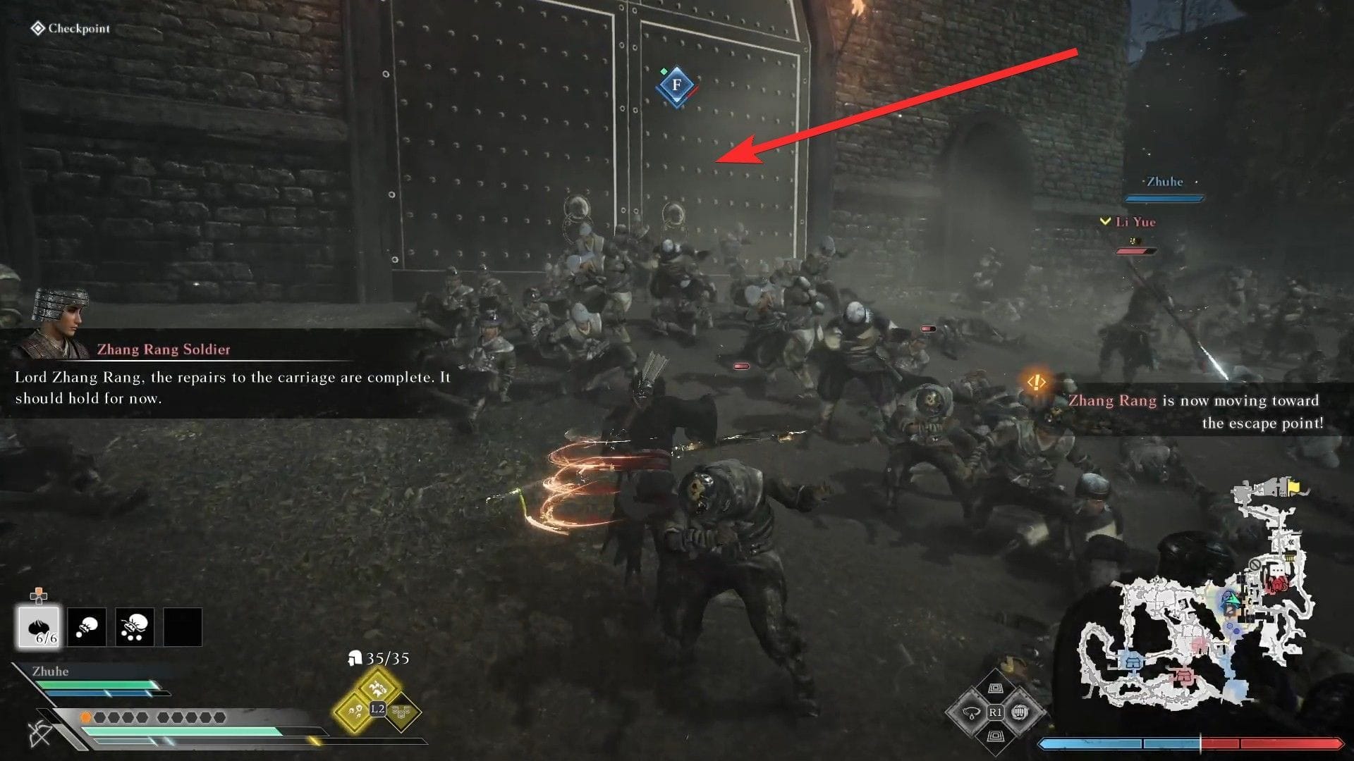 Направляйтесь к местоположению Чжан Жаня в правом верхнем углу, следуя за Дун Чжуа. Обязательно идите по другому пути, который он выбирает, чтобы застать врага врасплох.