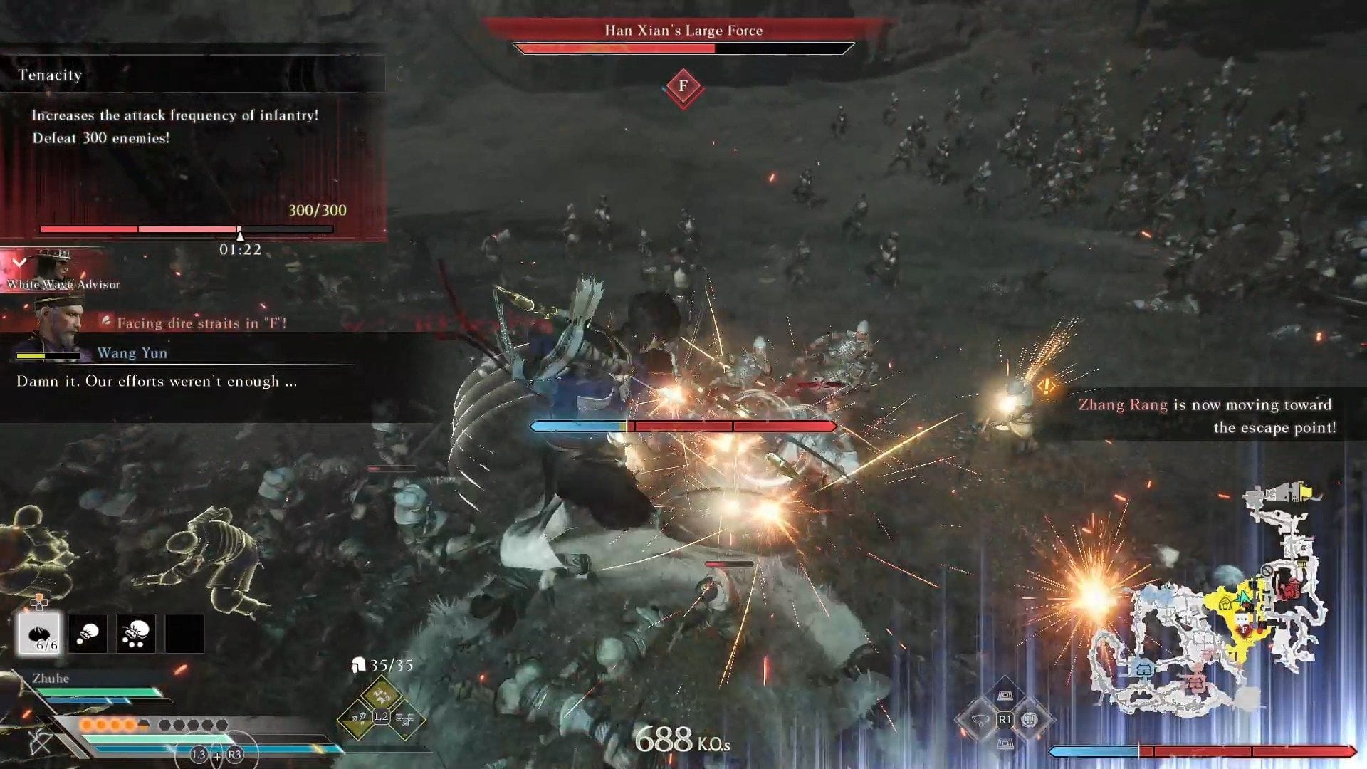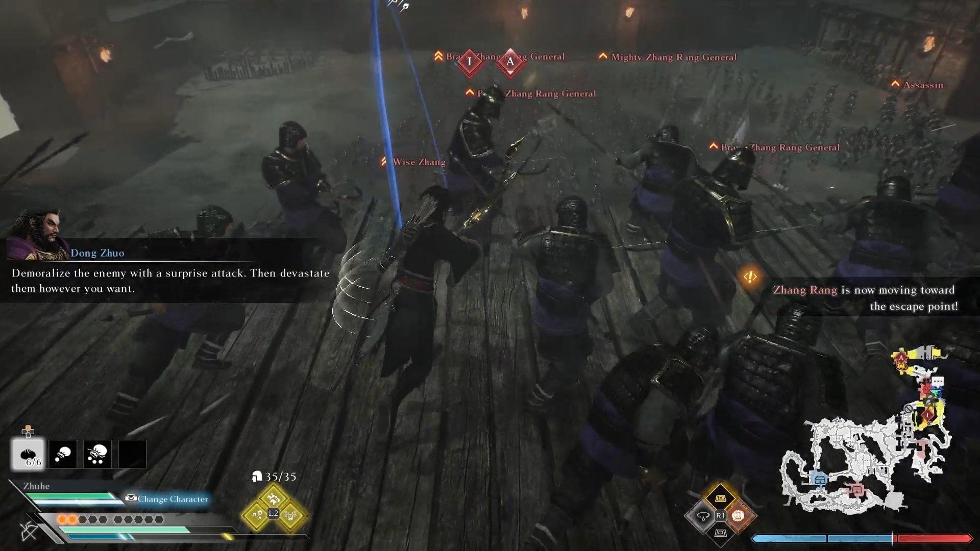 - Дополнительная задача (только на уровне сложности Ultimate Warrior): Поражайте Чжана Жана до того, как Дун Чжуа подойдет к нему.
