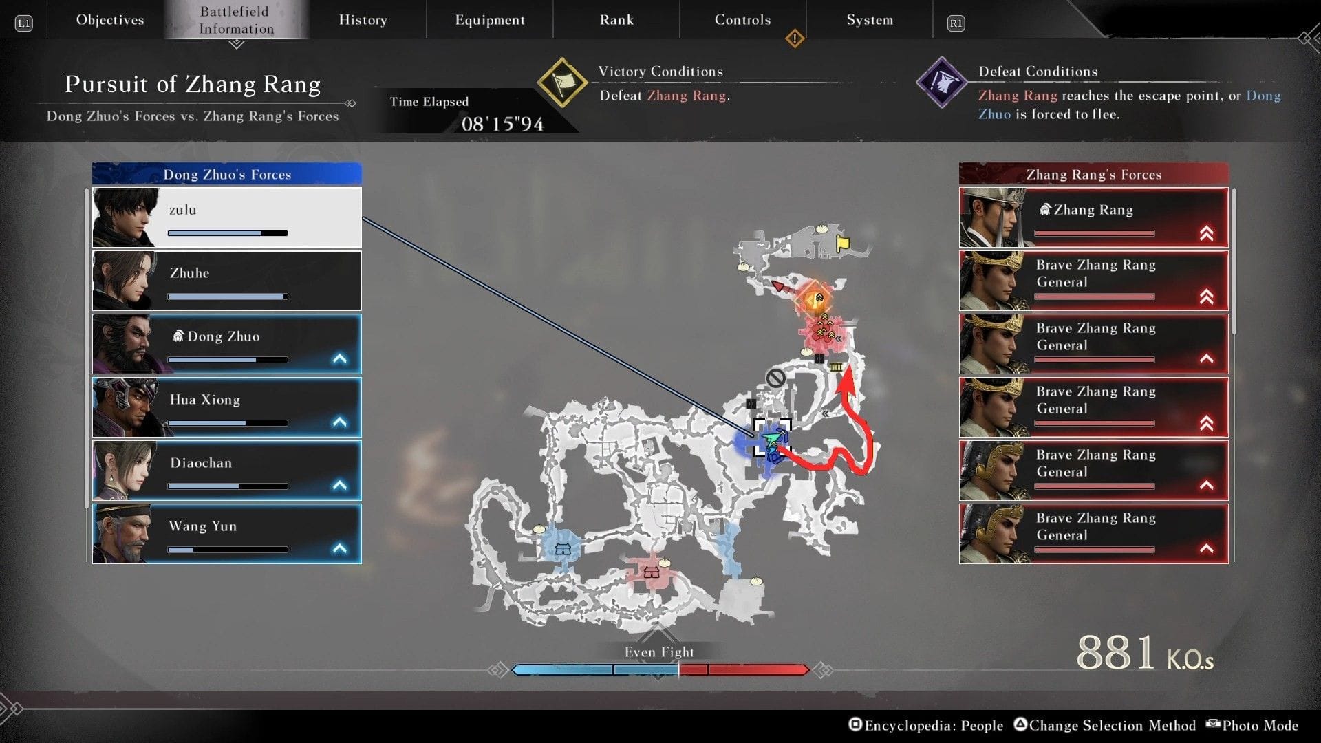 Теперь подвигайтесь к маркеру цели, чтобы начать операцию по поимке Чжана Жана в Dynasty Warriors Origins Visions of Four Heroes. Вот условия для боя: