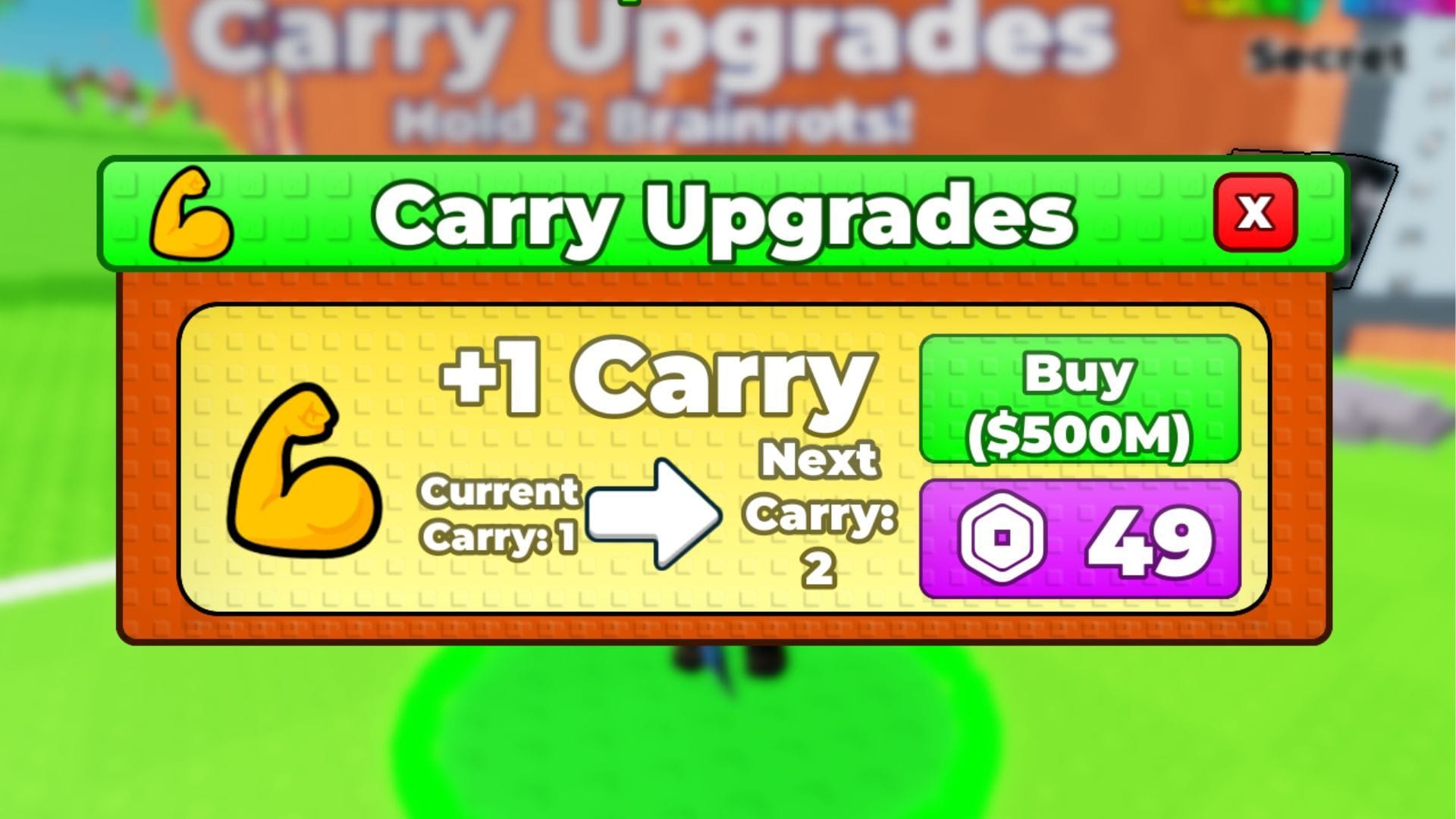 Магазин Улучшений переноски расположен справа от точки появления, рядом с Секретным Lucky Block. Повышая свою вместимость, вы сможете собирать больше brainrots из игровой зоны за один раз. Обратите внимание, что улучшения вместимости стоят дороже, чем улучшения скорости и требуют миллионов и даже триллионов денег.
