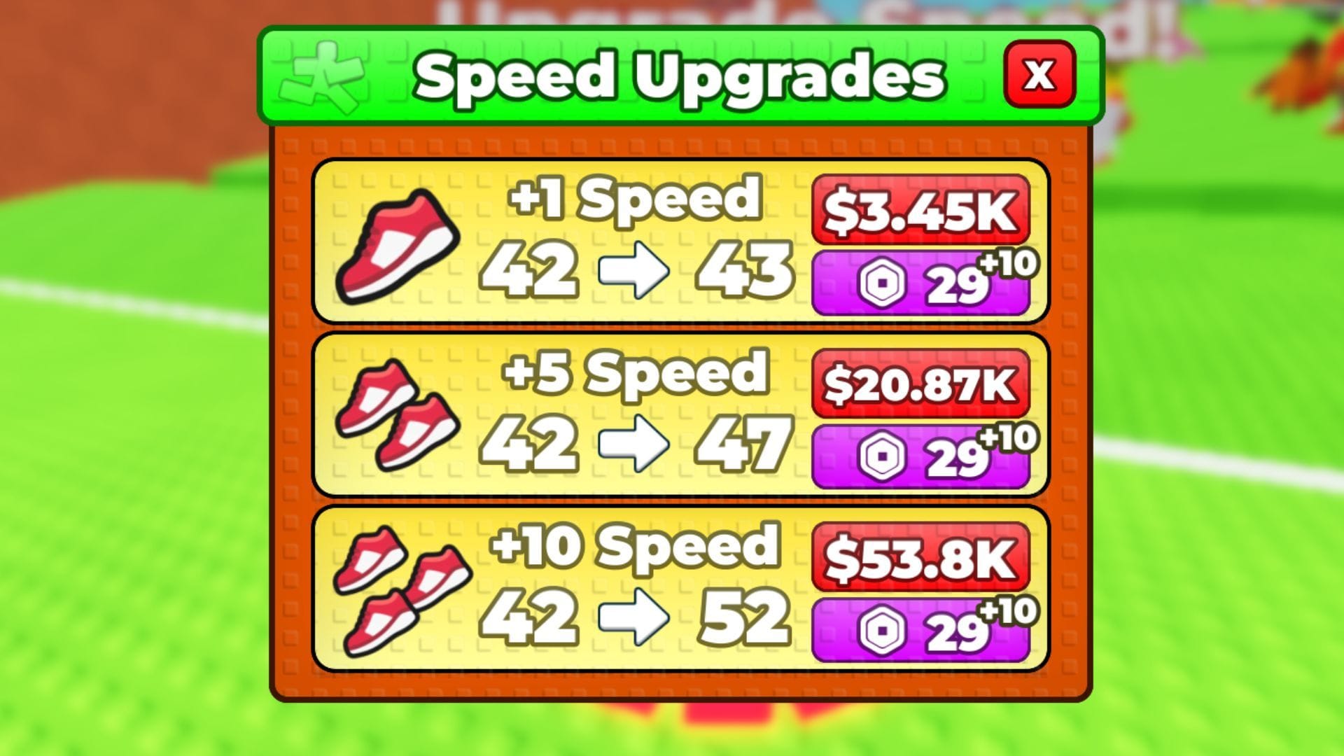 Скорость является наиболее важным параметром в этой игре. Она влияет на скорость движения вашего аватара и также позволяет получить доступ к Перерождениям. Вы можете приобрести этот параметр в магазине Улучшений скорости в безопасной зоне, используя деньги, полученные от brainrots и наличных наборов.