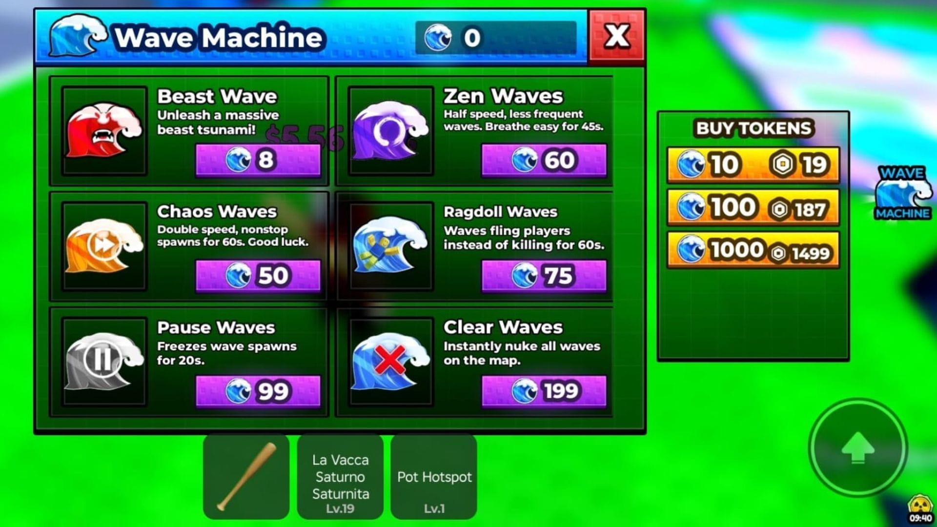- Хаос Волны (50 Токенов): Удвоенная скорость, бесконечное появление волн в течение 60 секунд. Удачи!