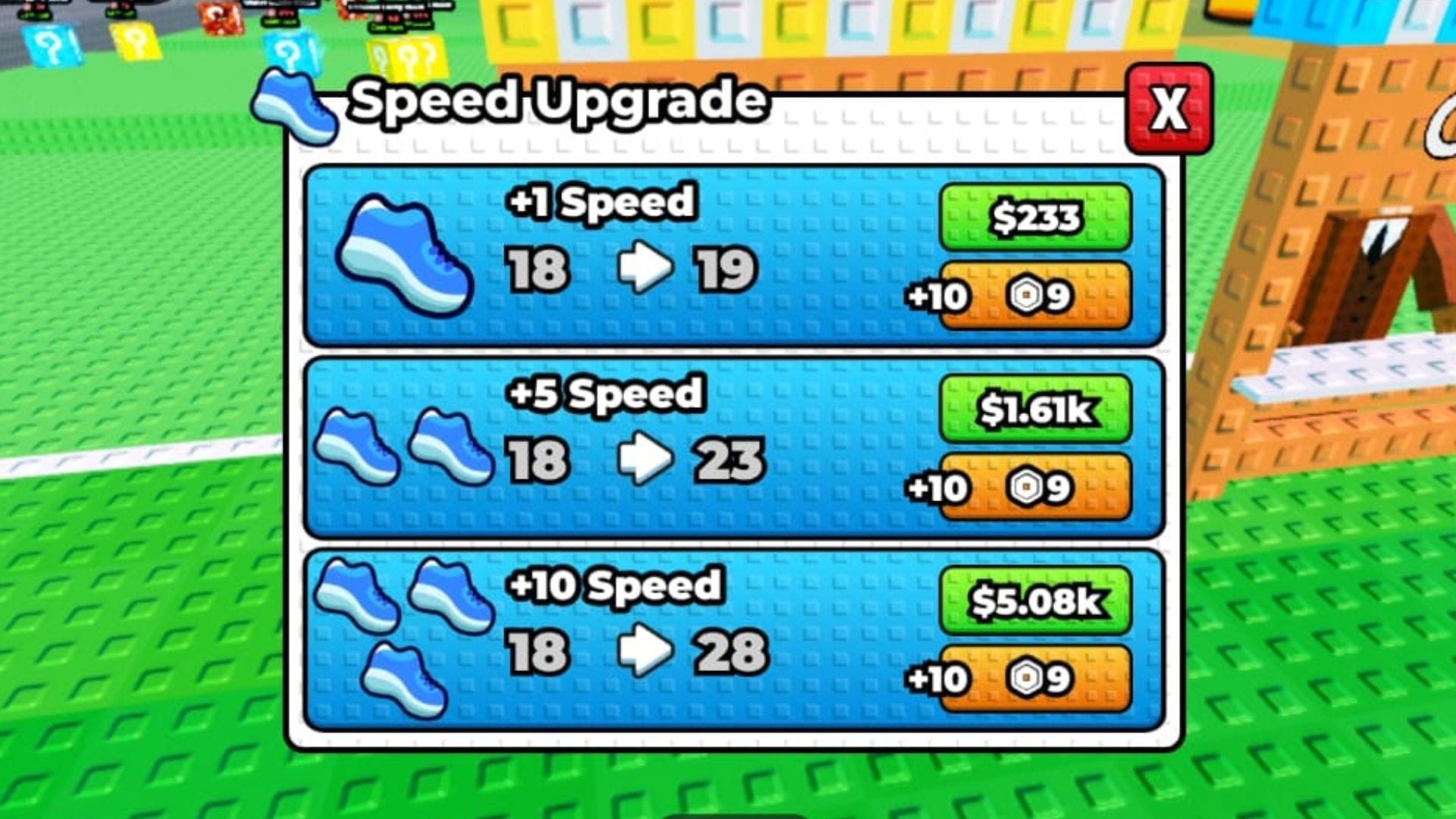 Поскольку Скорость является единственным условием для Перерождения, постарайтесь максимально использовать все полученные наличные в магазине Улучшений Скорости. Он находится в центре Безопасной Зоны и управляется NPC по имени Тунг Тунг Сахур.