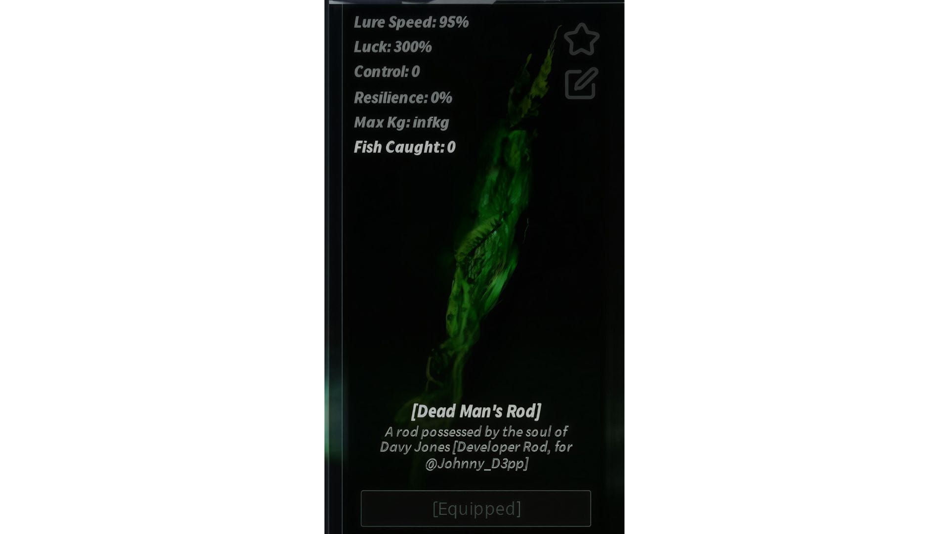 Dead Man’s Rod — это удочка высокого уровня, которая была представлена в обновлении Tidefall 17 января 2026 года. Она выглядит как разложившаяся рыба или морское существо, привязанное к тёмному посоху, с жутким дизайном и токсично-зелёной аурой. Поскольку этой удочкой владеет душа Дэйви Джонса, получить её можно только путём крафта, используя четыре различных ингредиента.