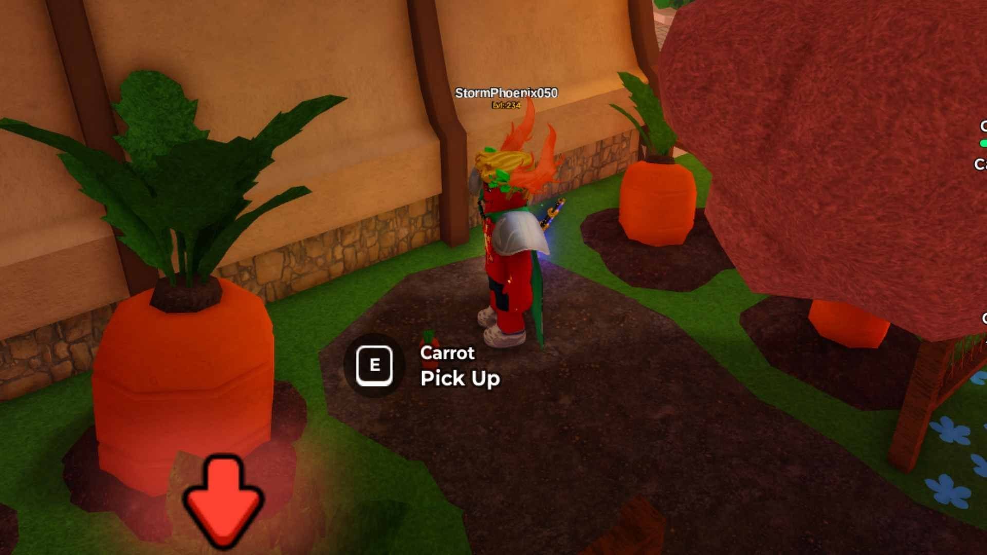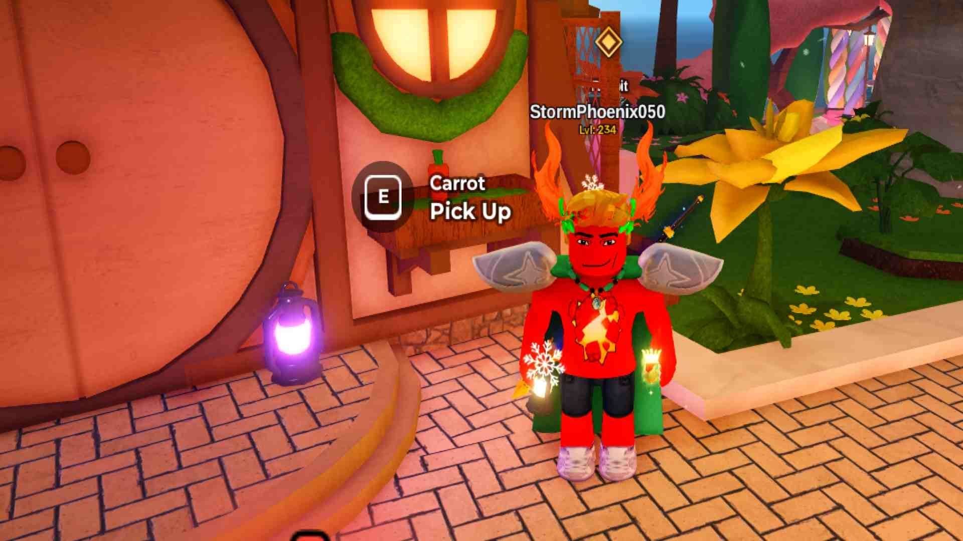 Первая морковка находится на деревянном выступе дома NPC Кролика. Просто посмотрите в окно, когда войдёте, чтобы встретить NPC, чтобы найти морковку и нажмите E, чтобы её собрать.