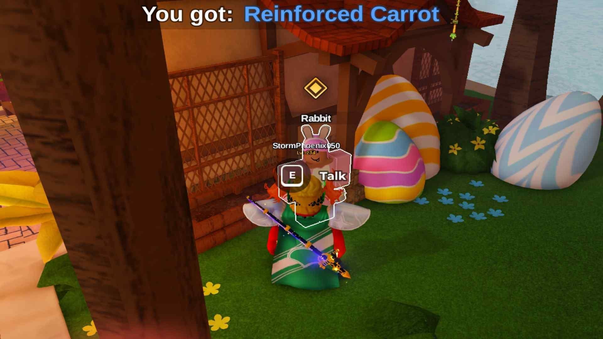 Находясь на острове, направляйтесь налево, чтобы обнаружить NPC Кролика рядом с большим домом. Поговорите с этим NPC, чтобы начать квест “Пасхальная корзина”. Задача здесь очень проста: принесите пять морковок, разбросанных по острову, обратно к NPC. Как только вы это сделаете, NPC наградит вас.
