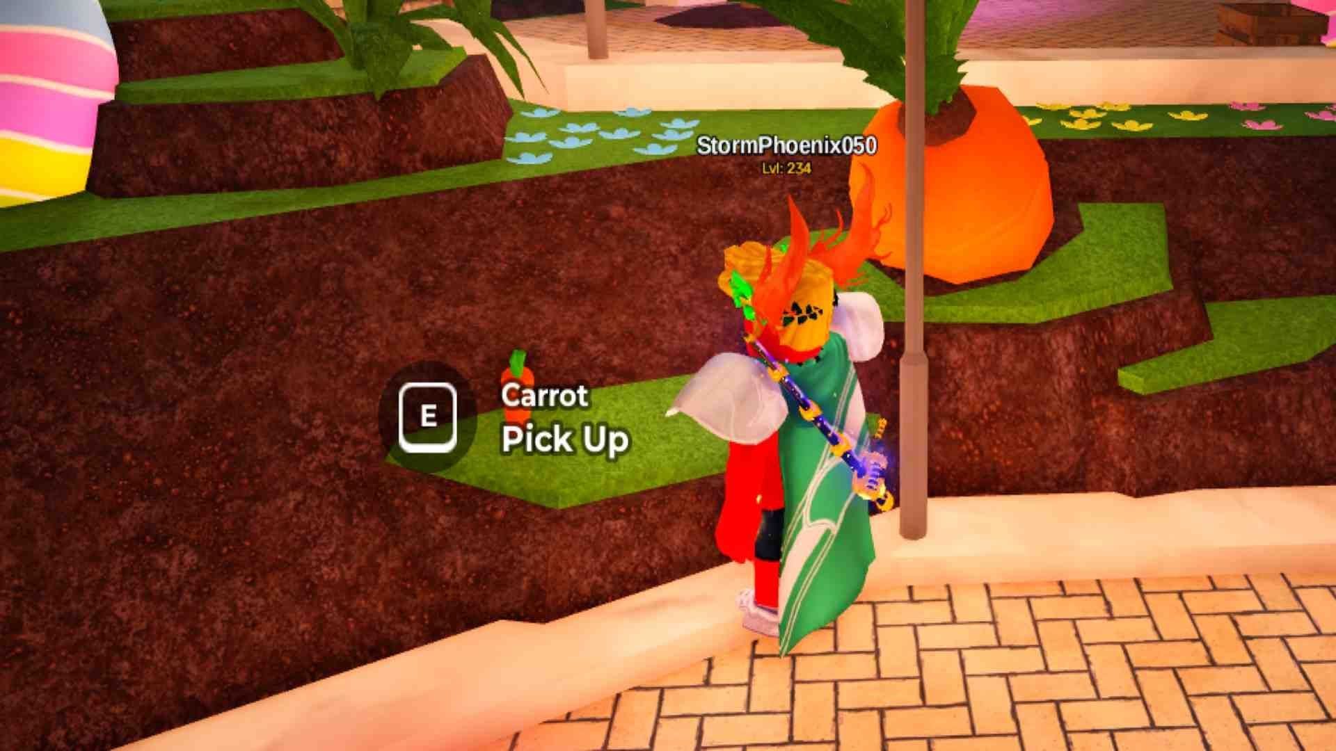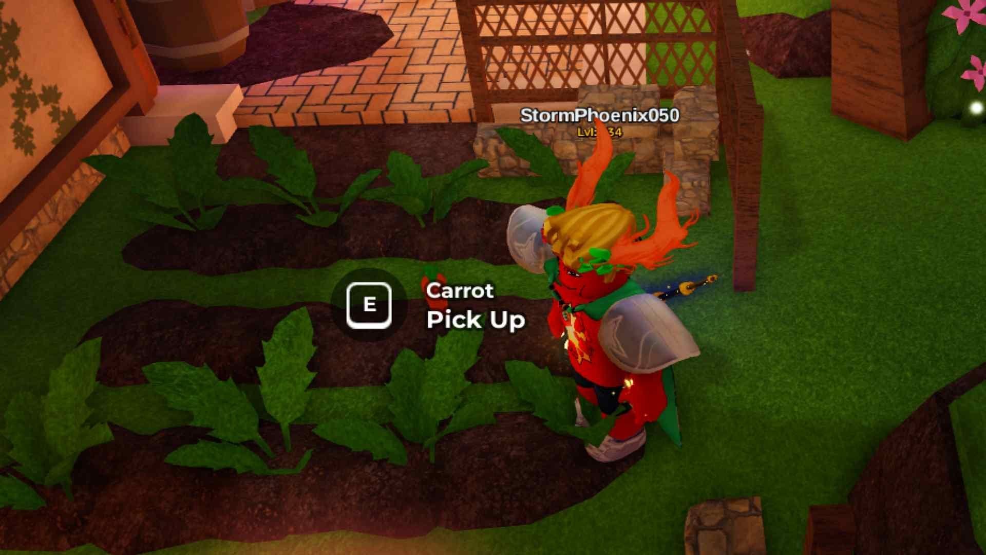 После получения второй морковки направляйтесь на другую сторону дома NPC Кролика и войдите в сад морковок. Подойдите к большой морковке в другом конце сада, чтобы найти меньшую морковку под ней. Нажмите E, чтобы добавить её в инвентарь.