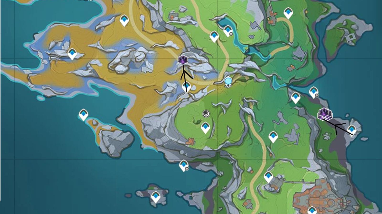 Маршруты фарма врагов Fisher of Hidden Depths в Genshin Impact