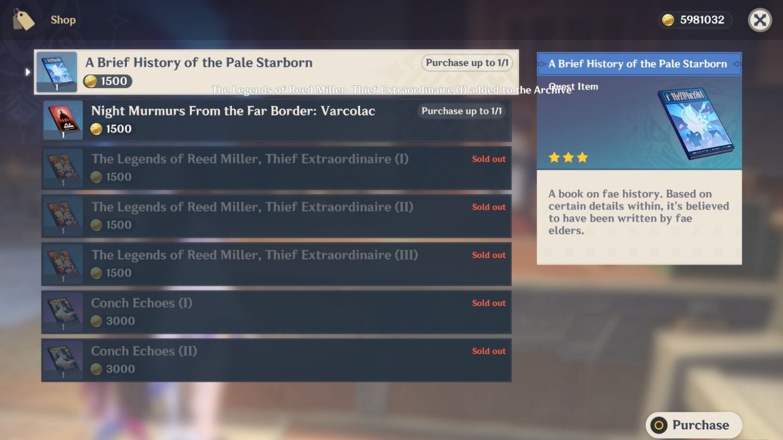 Вы можете купить книги Краткая История Бледных Звёзднородных и Ночные Шепоты с Дальнего Предела: Варколак у NPC Дхабита. Его магазин, также известный как Книги Мимисбруннра, находится в Наша Тауне. Кроме того, за сбор обеих книг вы получите достижения История Одного Города и Заколдованное Место Под Луной.