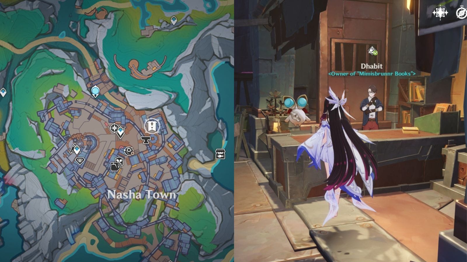 Чтобы найти магазин Дхабита, направляйтесь к кузнице Nod-Krai, затем воспользуйтесь лифтом за этим магазином, чтобы подняться на первый этаж. Отсюда поверните на север и двигайтесь прямо; вы найдете его магазин. Каждая книга стоит 1500 Мора, так что вам потребуется потратить 3000 Мора, чтобы приобрести обе.