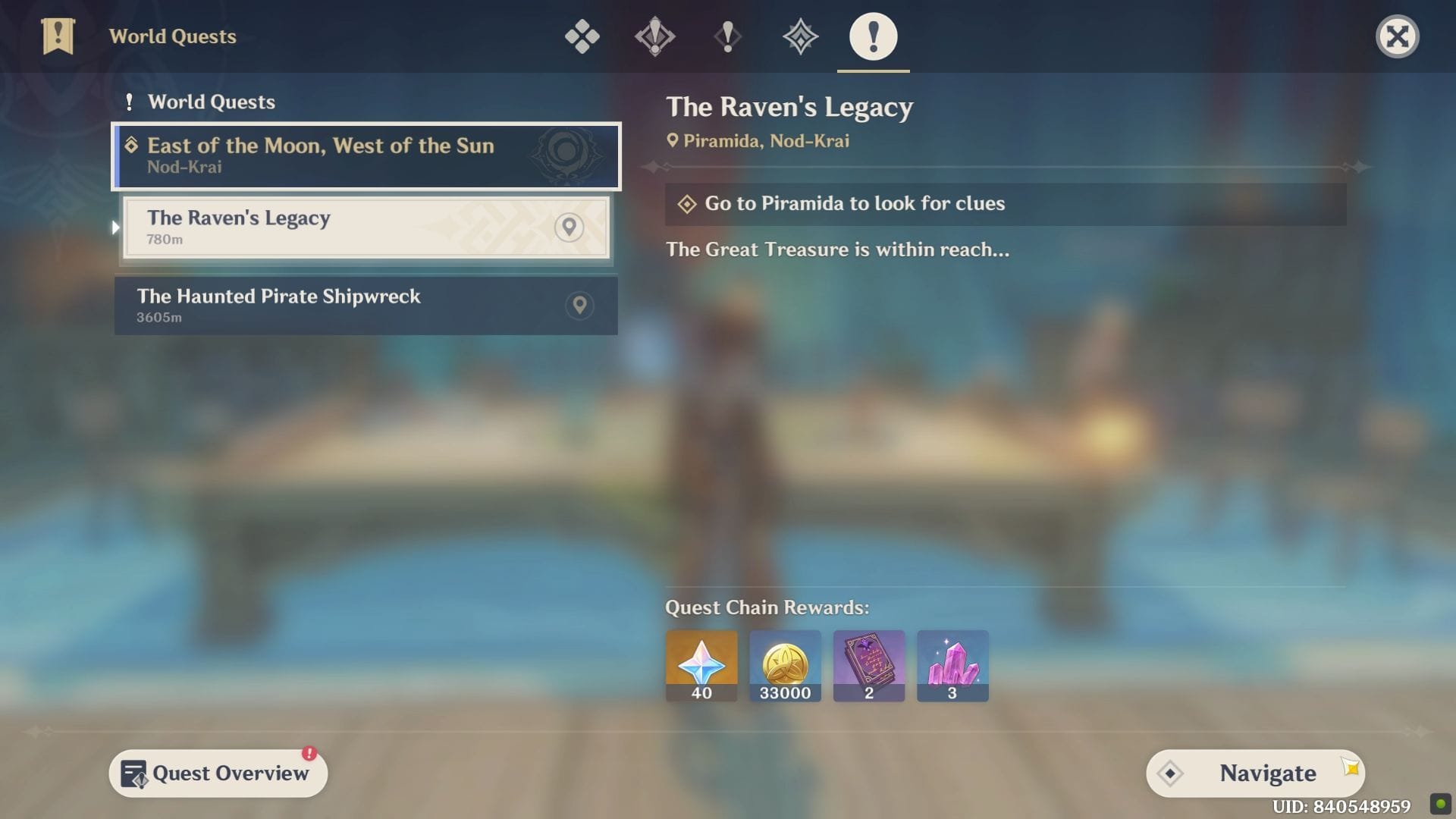 Квест «Наследие ворона» является заключительной частью серии «Восток от Луны, Запад от Солнца» и может быть разблокирован только после завершения следующих квестов:
