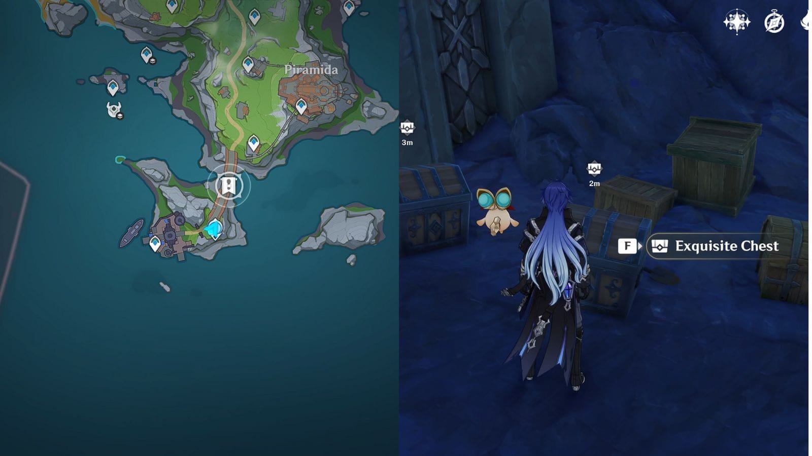 Для разблокировки рецепта Овощного супа телепортируйтесь к Статуе Новой Луны в подрайоне Войдморя. Перед вами вы увидите маленький мост, и следуйте по маршруту через мост. Когда вы дойдете до его середины, спуститесь вниз, и вы найдете сундук, охраняемый несколькими Гео Слизнями, немного слева от вас.
