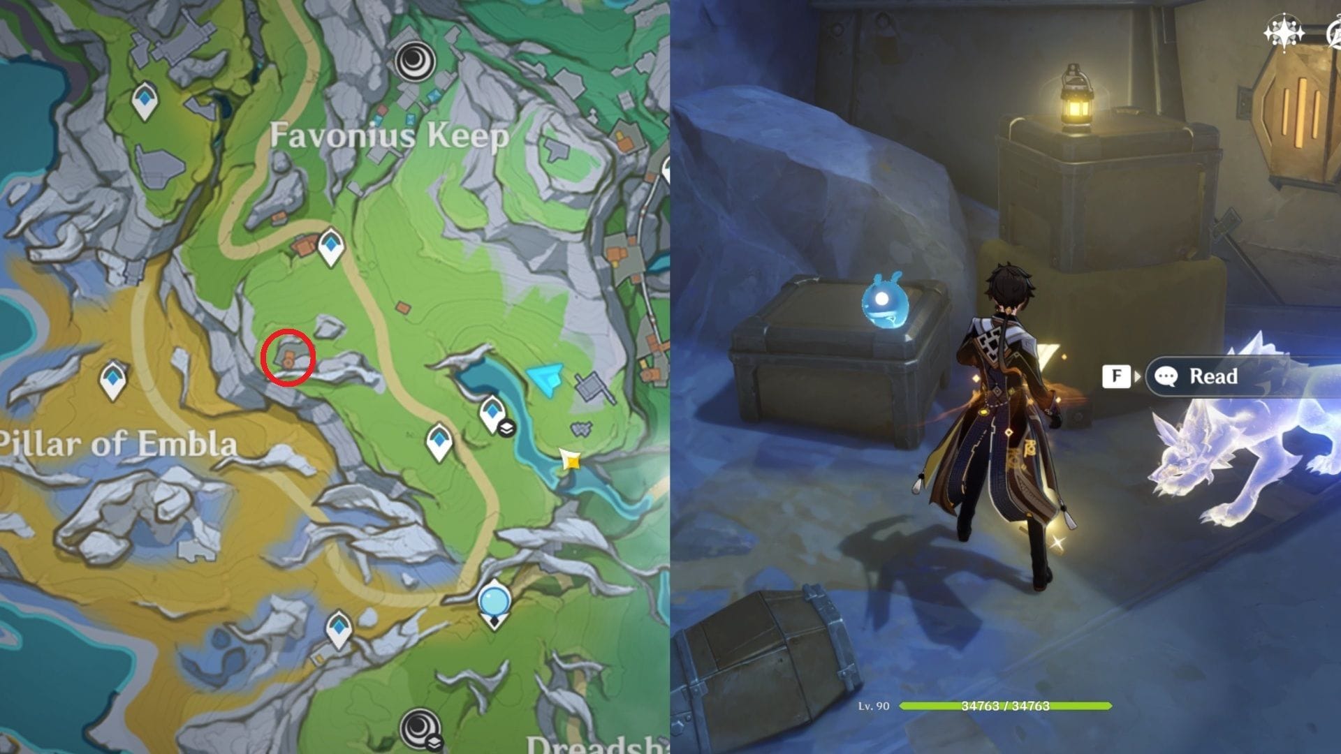 Отправляйтесь к маяку рядом со Столбом Эмбла в полночь, чтобы найти призрачного волка, который смотрит на сияющую точку на земле. Взаимодействуйте с ним, чтобы прочитать записки. После этого следуйте за волком и исследуйте все интерактивные точки, пока не доберетесь до руин, где нашли меч. Это принесет вам еще один Исключительный Сундук.