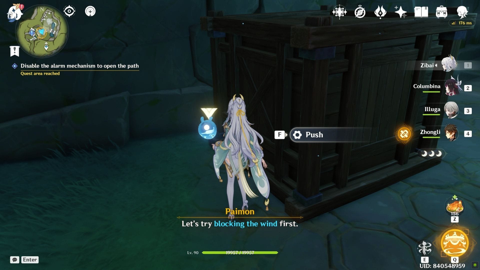 Взаимодействуйте с отмеченной локацией, чтобы толкнуть коробку и заблокировать ветер.