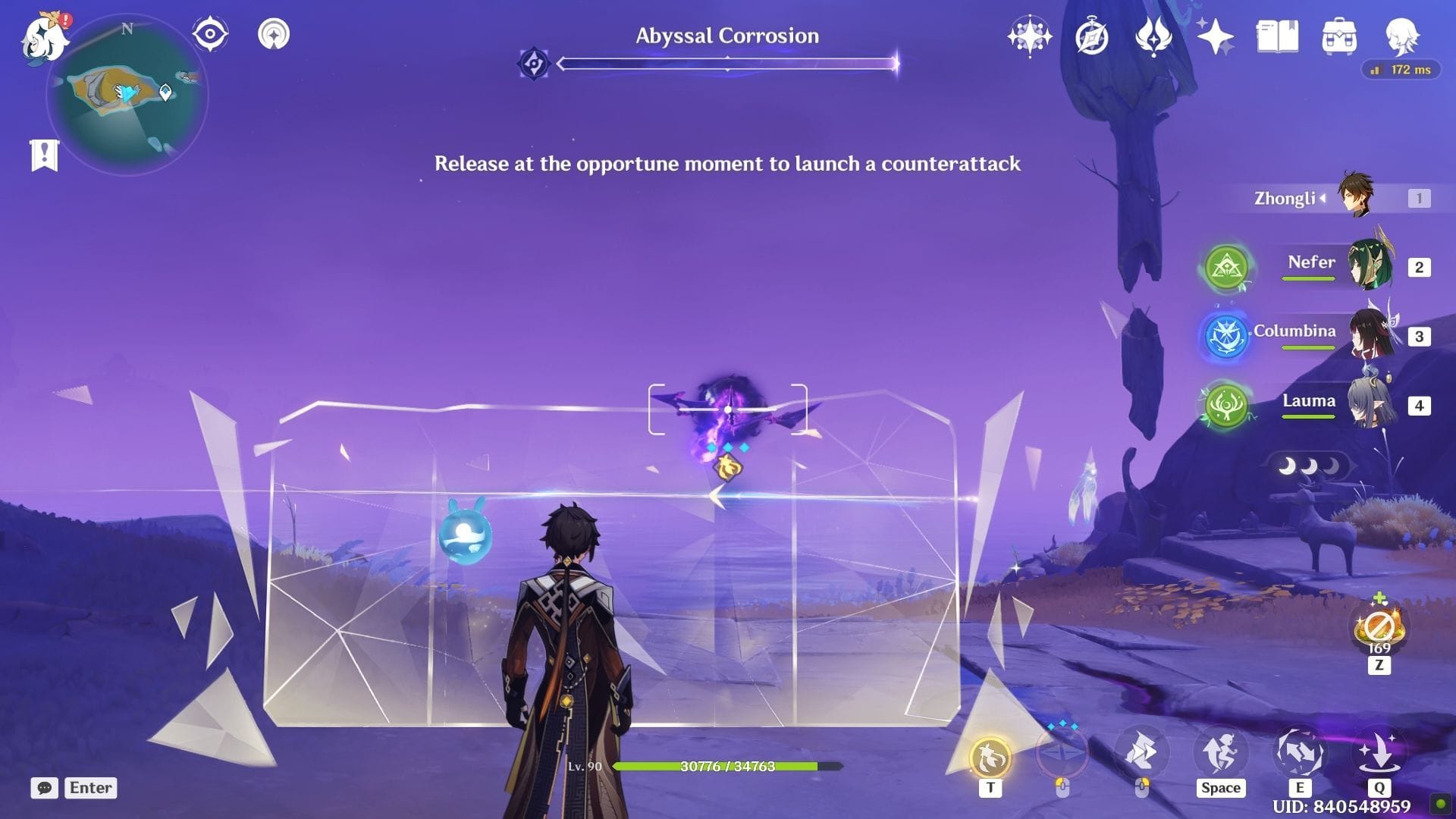 Взаимодействуйте с активированным растением, чтобы получить особую энергию куувалки. Удерживайте кнопку атаки, чтобы вызвать щит, и нацеливайтесь на Злое Око. Дождитесь, пока враг атакует, и отпустите кнопку, когда его атака приближается к щиту, чтобы нанести контратаку. Повторяйте это, пока не уничтожите всех Злых Очей и не исчерпаете шкалу Абиссальной Коррупции.