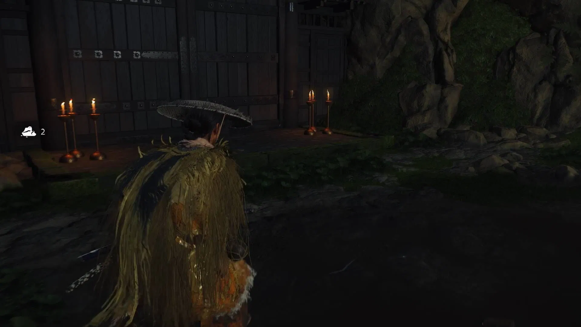 Войдя в пещеру, вы обнаружите бамбуковую дверь, которую необходимо открыть с помощью крюка. Когда вы натянете дверь, начнется кат-сцена, в которой появится Сома. Затем произойдет краткий диалог между Сомой и Ацу, что приведет сразу к поединку 1 на 1.