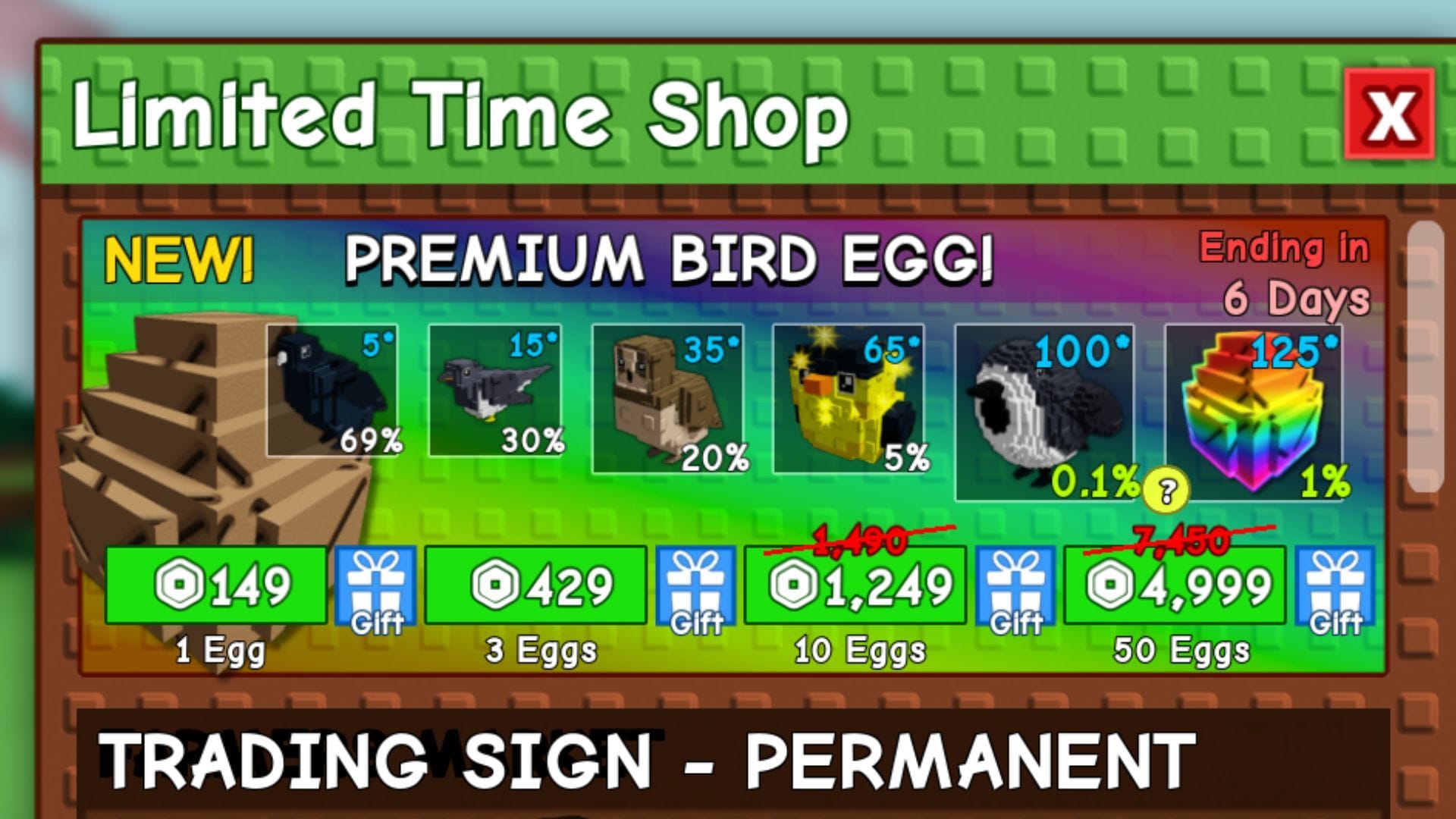 Одно Premium Bird Egg стоит 149 Robux в Магазине.