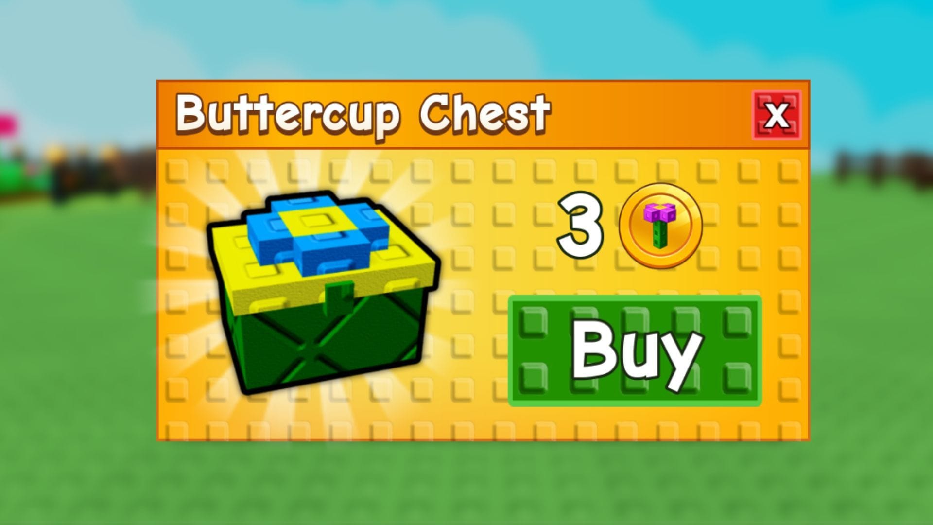 Вероятность получить Bigger Buttercup из сундука Buttercup составляет 35%. Этот предмет ограниченного времени в настоящее время можно приобрести у Бруклина, NPC, стоящего в саду посередине карты. Один сундук стоит 3 монеты Buttercup, валюты, которую можно заработать, завершив квесты Buttercup.