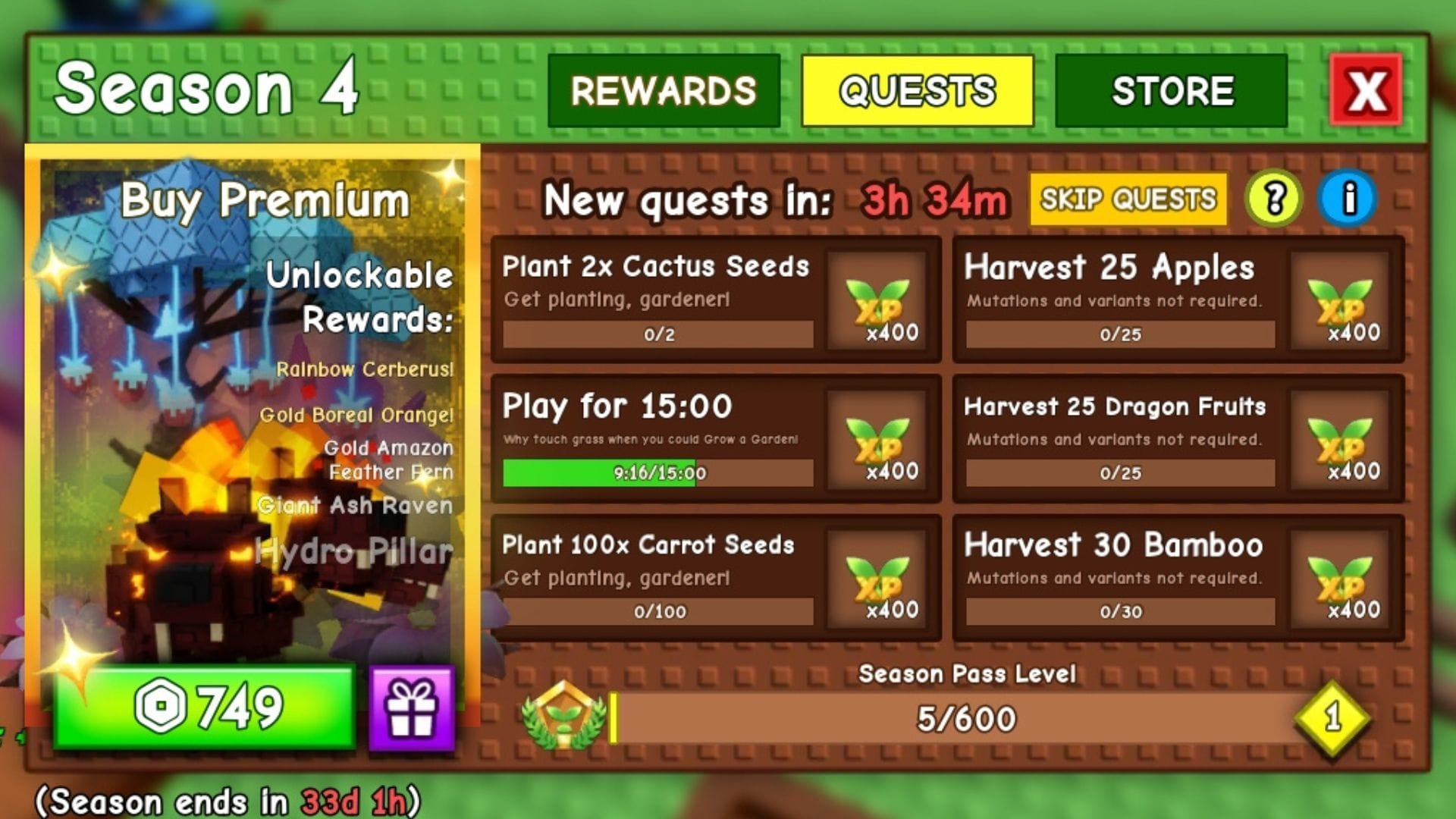 В зависимости от редкости и количества мутаций, имеющихся у собранного урожая, вы можете заработать очки опыта. Например, сбор урожая мифического растения без мутаций принесет вам 5 очков опыта.
