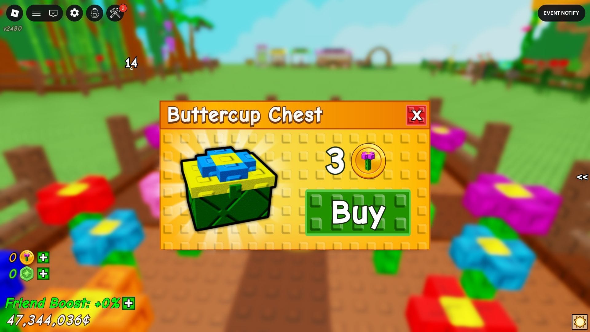 Buttercup Chests можно приобрести в магазине события Buttercup Quest за 3 Buttercup Coins. Эти монеты вы можете получить, выполняя ежедневные квесты Buttercup, что делает их достаточно доступными для всех игроков. Поскольку магазин события работает на основе генерации случайных чисел, Chest может быть не всегда доступен в наличии. Поэтому вам может понадобится подождать пять минут, пока магазин обновит свой ассортимент и возможно добавит Chest в его выбор товаров.