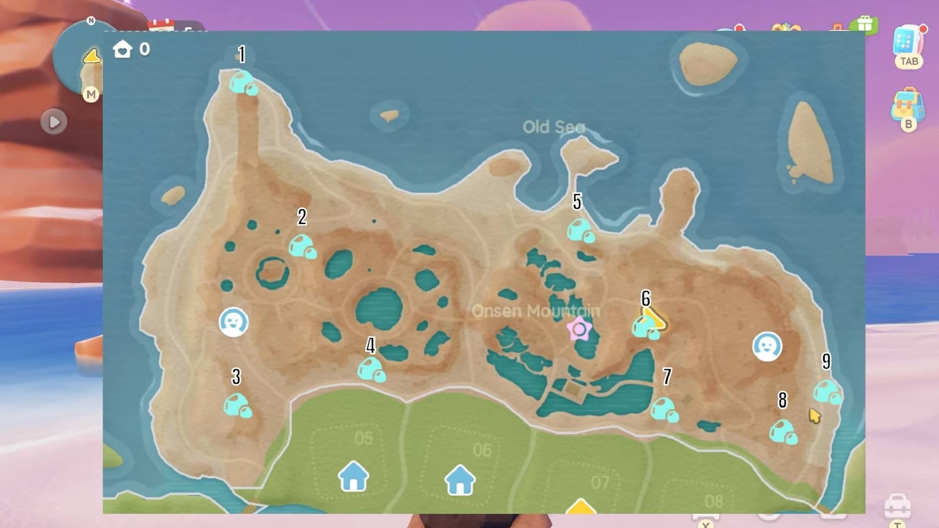 Starfall Shards особенно появляются на горе Onsen во время погодного события Meteor Shower. На этой горе имеется девять мест, где можно найти руды Starfall различных цветов. Вы можете ознакомиться с картой ниже, чтобы увидеть нумерацию всех девяти мест нахождения Starfall Shards.