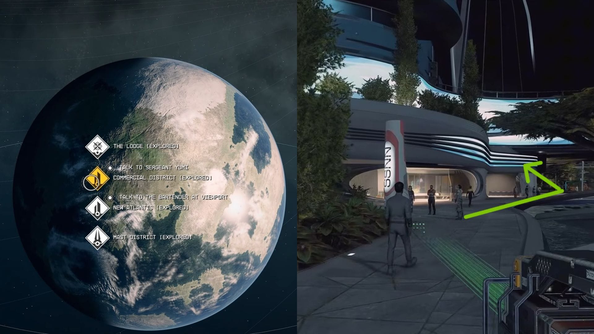 Первое, что нужно сделать, это открыть Звёздную карту и перейти к Альфа Центавра. Выберите Джемисон из прилегающих планет. Когда появится экран планеты, выберите The Lodge (Изучено) и из трёх вариантов посадки выберите первый: Поговорить с сержантом Юми (Коммерческий район). Вы приземлитесь именно там.