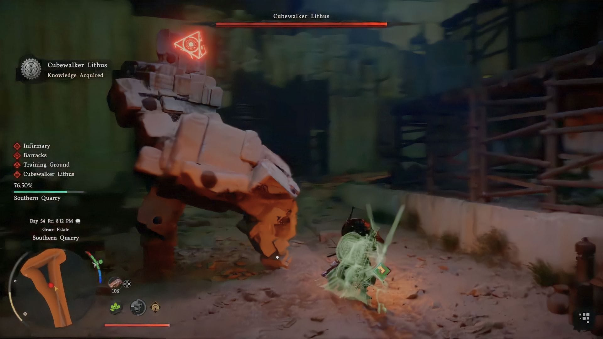 В Crimson Desert представлены несколько боёв с боссами, одним из которых является Cubewalker Lithus. Это массивный каменный голем, который использует медленные, но мощные атаки с большим радиусом действия (AoE), и из-за ограниченной боевой зоны сражение может быть сложным. Кроме того, он способен разбивать части своих кубических камней и создавать вихрь, уклониться от которого невозможно.