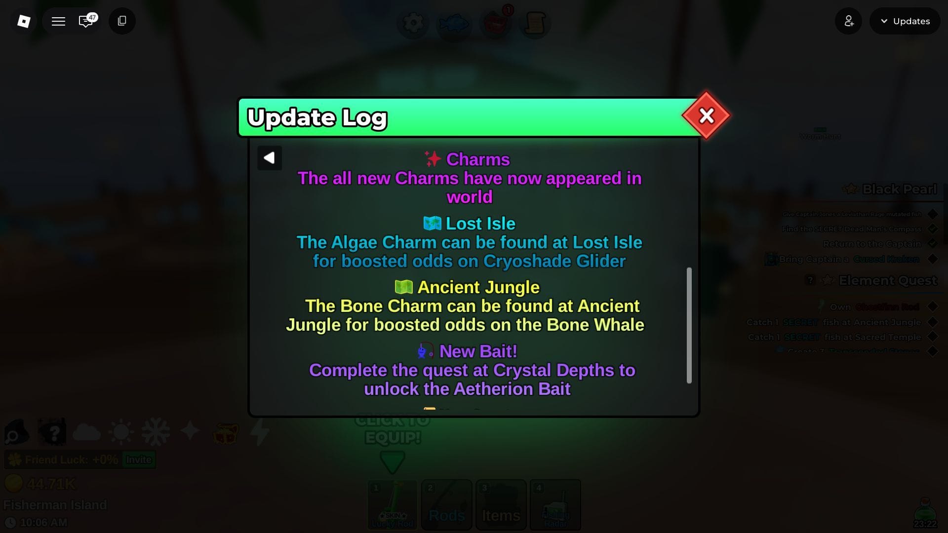 Чарм Кости доступен для покупки за 70,000 монет в Священном Храме в Древних Джунглях. После его использования ваши шансы поймать Кость Кит увеличиваются в 1.5 раза, и он может быть использован игроками старше 100 уровня.