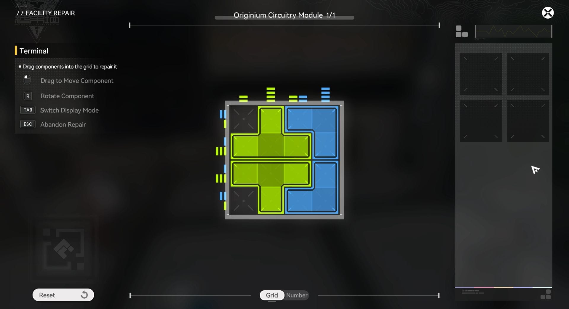 Взаимодействуйте с терминалом и отремонтируйте его, решив головоломку с цепью Ординий. После этого снова взаимодействуйте с ним и проверьте запись Голосовой журнал: Шатдаун.