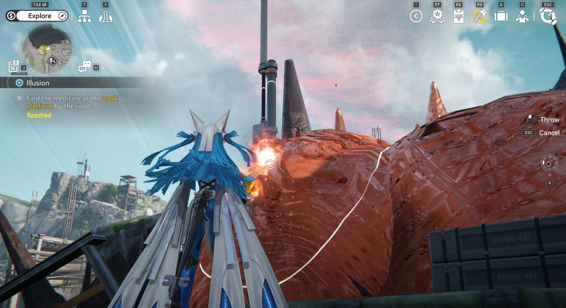 Двигайтесь на север, чтобы найти что-то красное, напоминающее грязь, которое блокирует путь к рабочей площадке. Используйте сканер и бросьте промышленную взрывчатку (бомбу) в светящееся место, чтобы убрать преграду. Далее направляйтесь к площадке и взаимодействуйте с заметкой над коробкой.