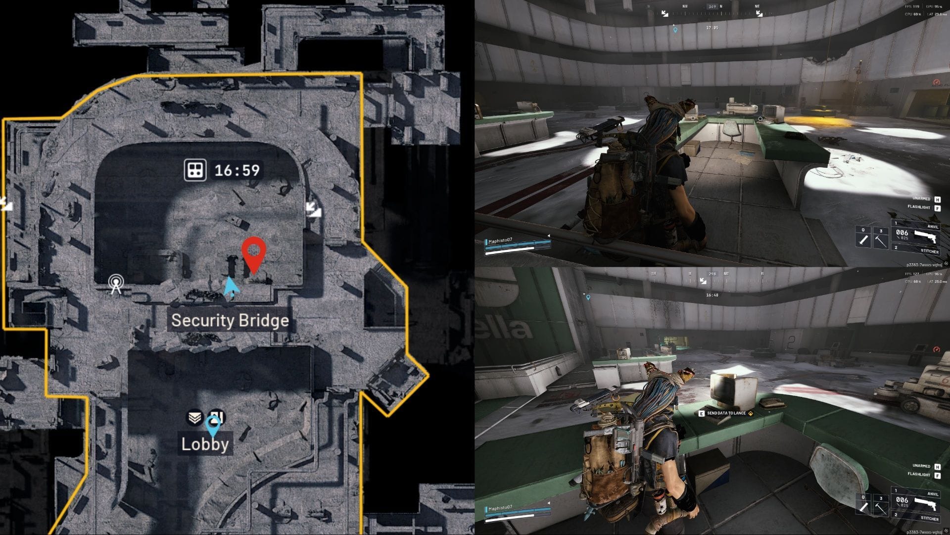Сначала направляйтесь к Лобби. Рядом с Безопасным мостом вы найдете несколько компьютеров. Подойдите к одному из них, и вы увидите подсказку “Отправить данные Лэнсу.” Взаимодействуйте с ним, чтобы завершить первую задачу.