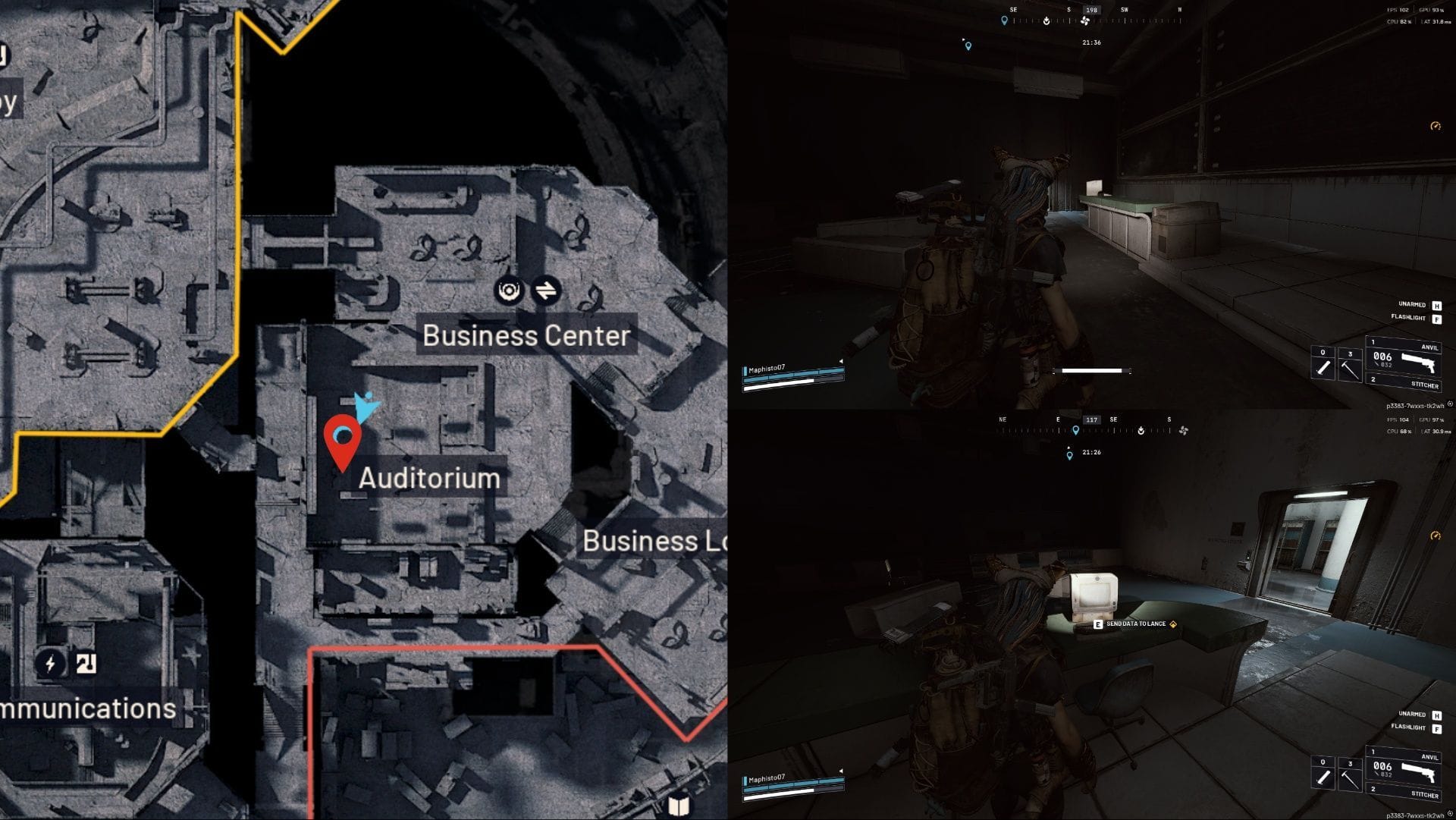 Для выполнения второго задания необходимо отправиться в Актовый зал, который расположен между Лобби и Культурными архивами. Когда вы доберетесь до комнаты, ищите стол с компьютером. Подойдите к нему, и вы снова увидите подсказку “Отправить данные Лэнсу.” Взаимодействуйте, чтобы завершить вторую задачу.