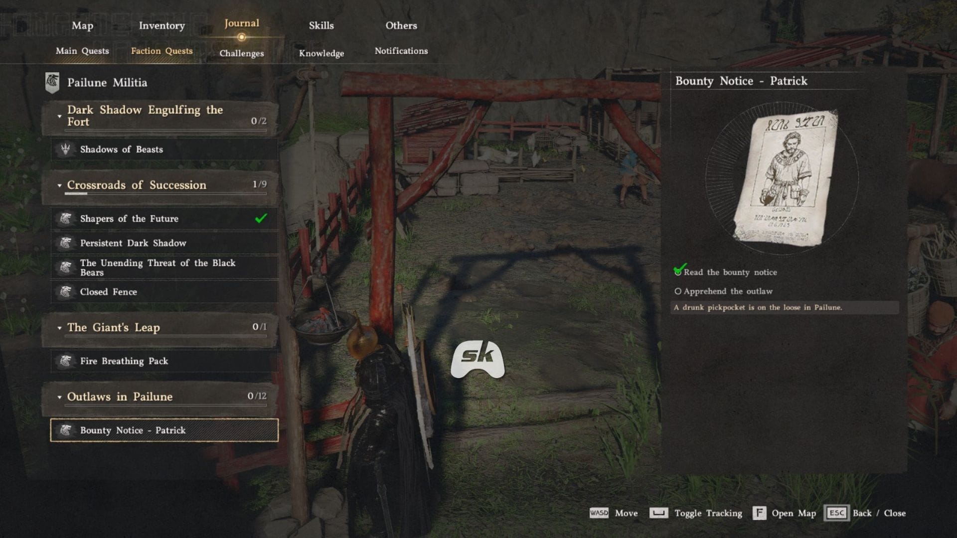 После того как вы подберете постер с наградой в Пайлун, прочитайте его, чтобы получить информацию о вашей цели. На постере будет описан преступник по имени Патрик, который является пьяным карманником. После прочтения вы получите отметку на вашей карте, указывающую местоположение Патрика.