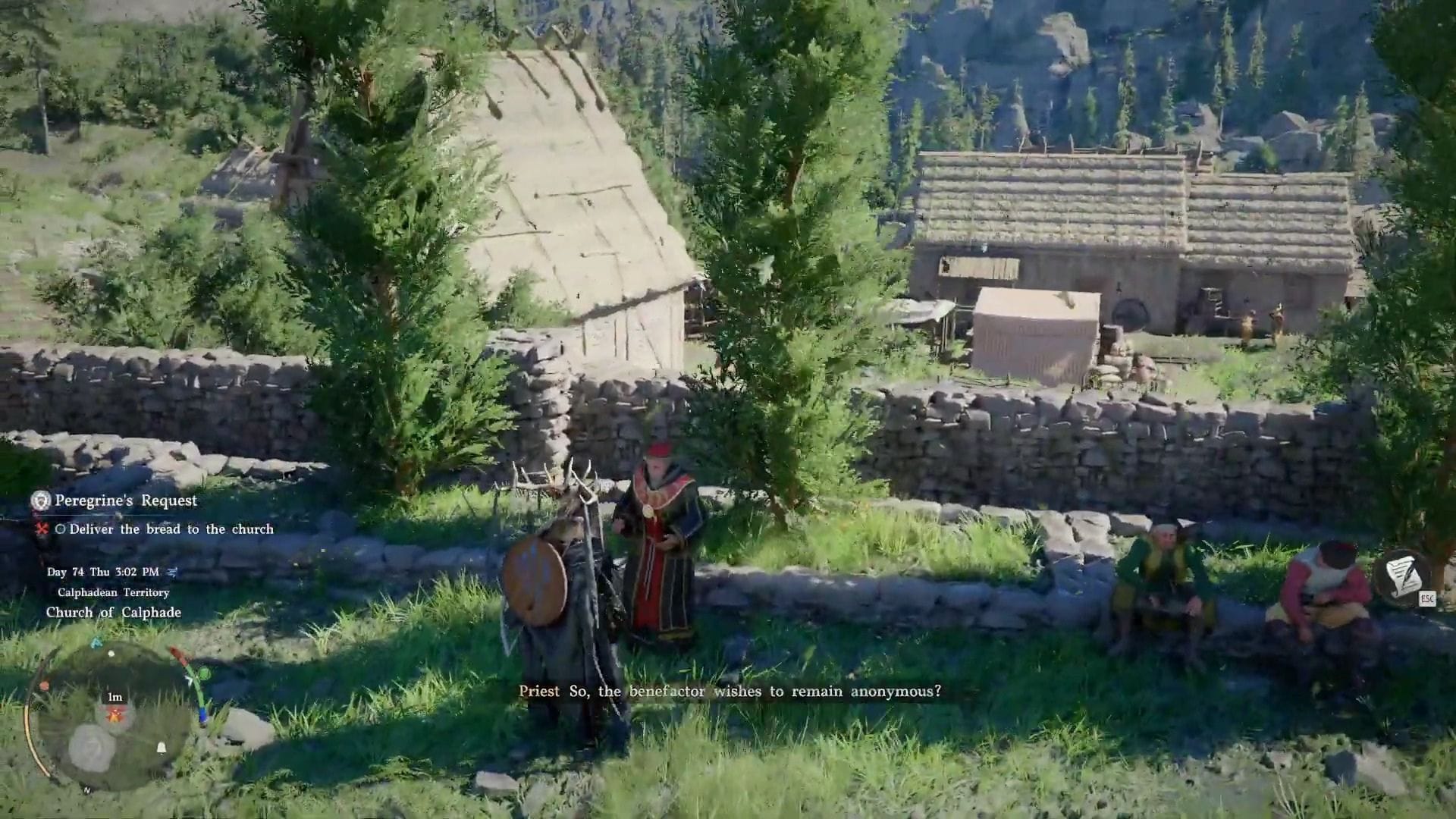 После взаимодействия с Перегрином он выразит намерение анонимно пожертвовать еду местной церкви. Вам нужно собрать корзину с хлебом и доставить ее в следующее место, а именно в Церковь Кальфадии. По дороге могут встретиться несколько врагов.