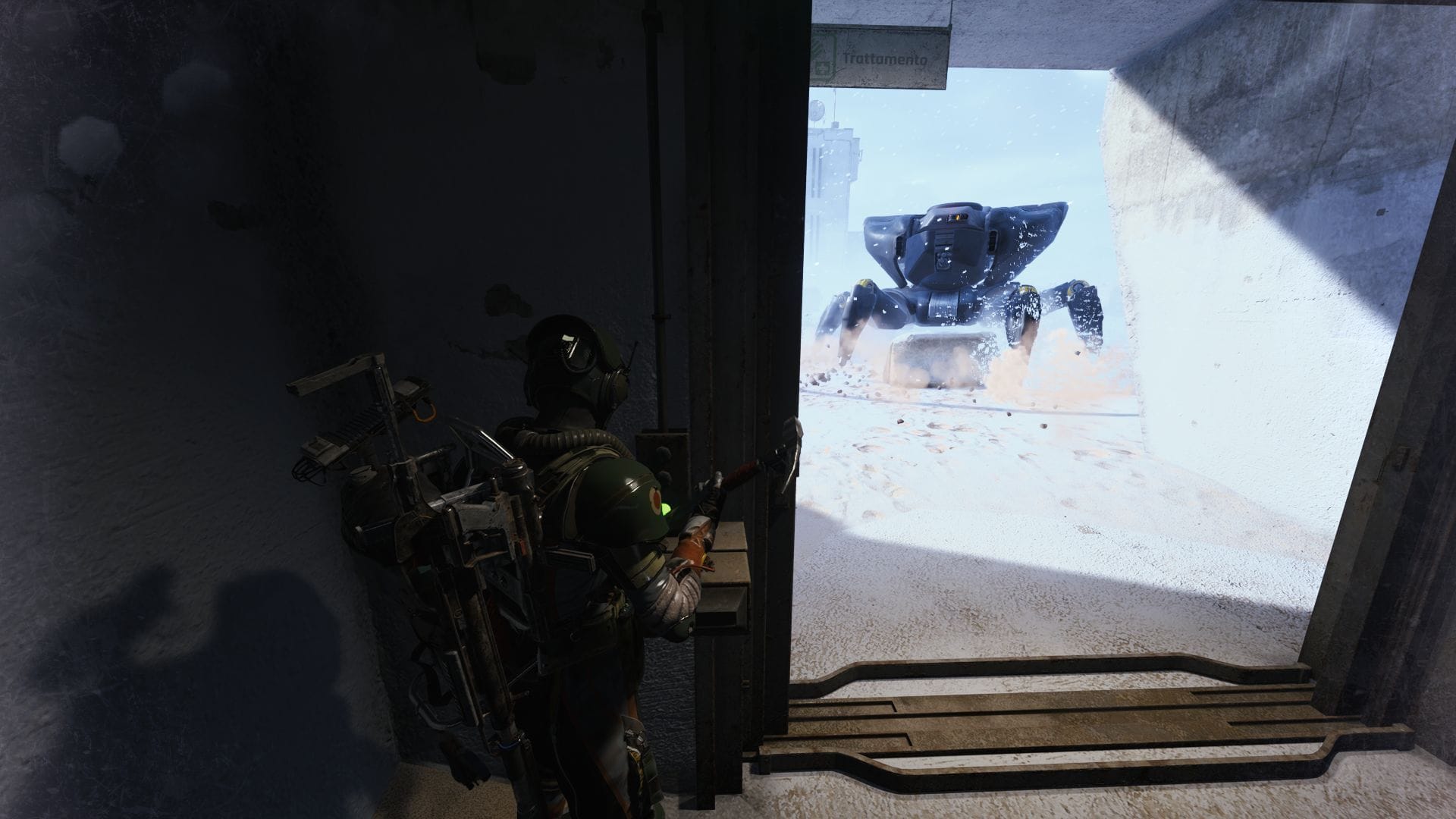 - Если вы не принесли Trailblazers или Deadlines, оглушите ARC, сломав сустав ноги, а затем стреляйте в жёлтый контейнер с уязвимой частью позади робота.