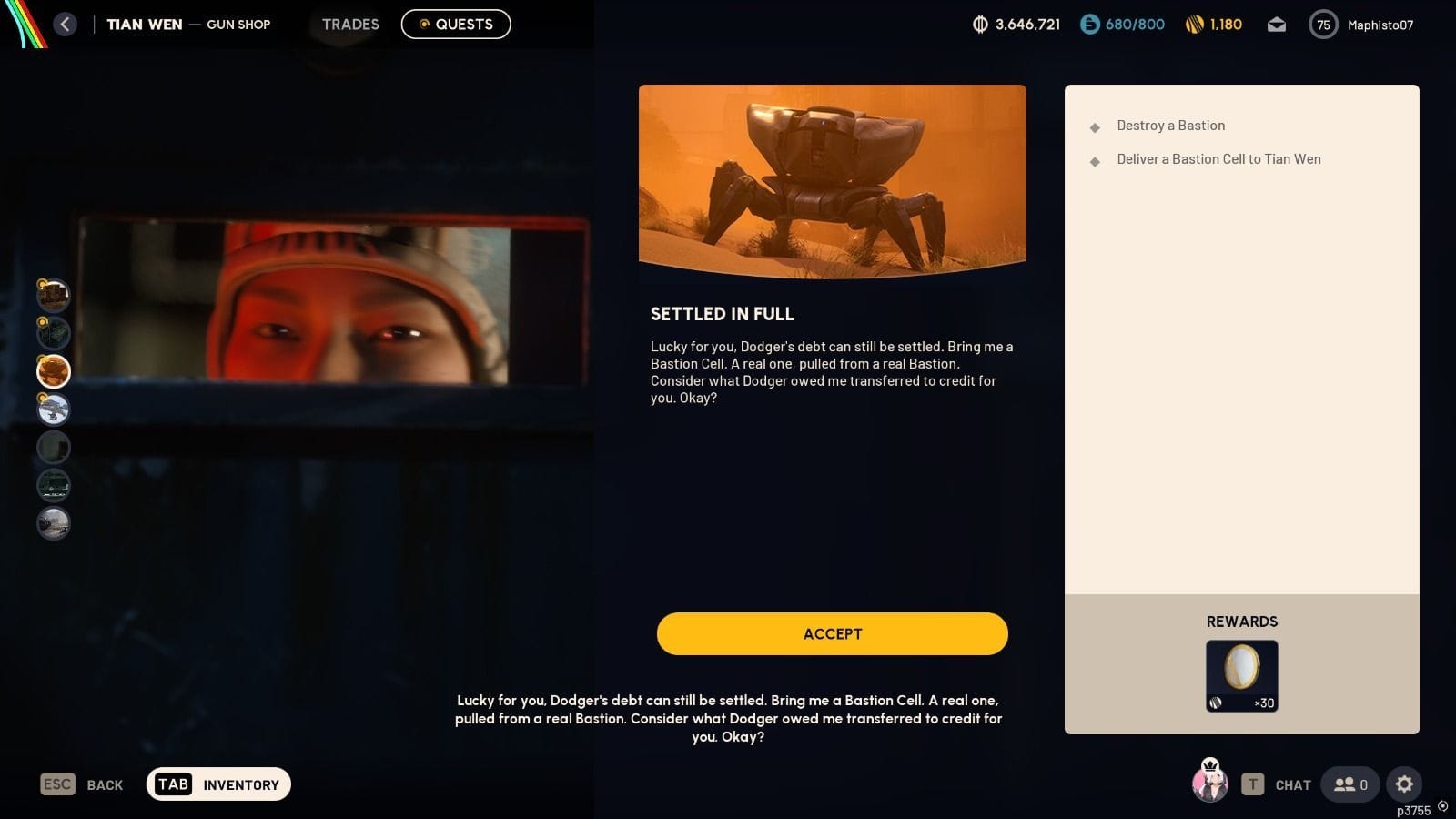 Теперь, когда вы уничтожили Bastion, обыщите его ноги и тело, чтобы получить ячейку Bastion. Храните её в безопасном кармане, чтобы гарантировать, что вы сможете вернуть её в Speranza безопасно. Извлеките ячейку и поговорите с Тянь Вэном. Это завершает миссию Settled in Full в ARC Raiders.