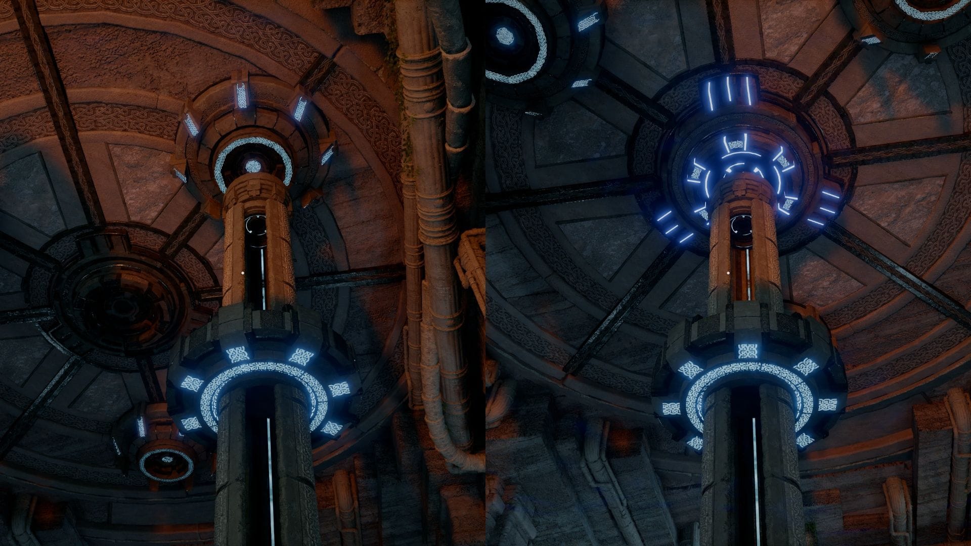 Используйте кнопку Turn Right, пока не услышите звук. Повторите это для других портов на потолке, но Turn Left. Возможно, это не имеет значения, но именно в таком порядке я и делал. Это должно заставить порт в центре головоломки загореться синим. Подключите столб к центральному порту, и вы увидите короткую кат-сцену из области над землёй. Это завершает головоломку Т twisted Thicketway в Crimson Desert.